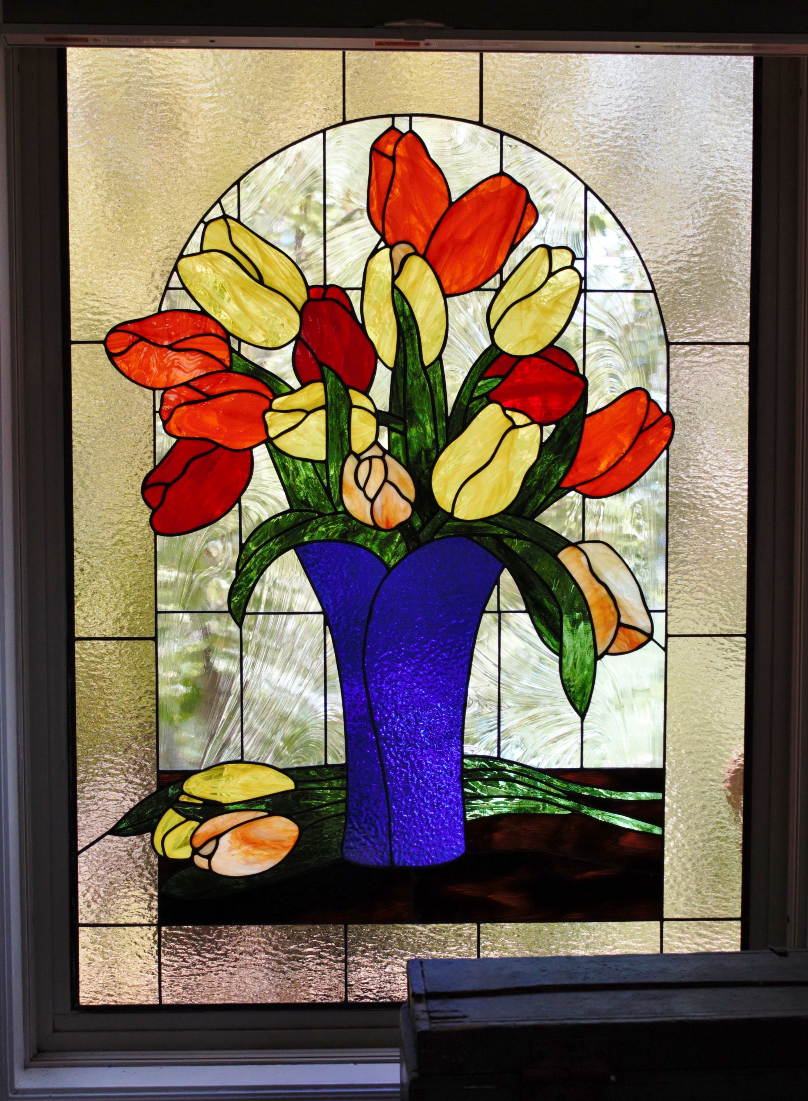 Витраж с цветочным орнаментом