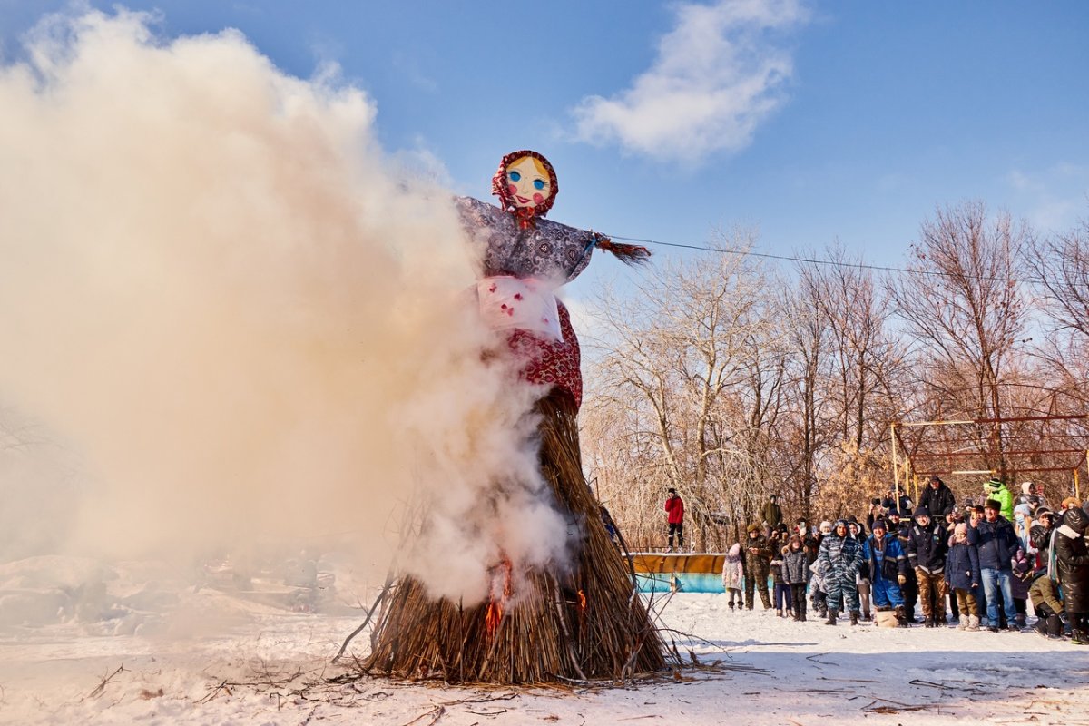 Картинка горящего чучела на Масленицу