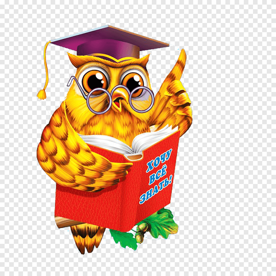 Сова с книжкой на прозрачном фоне