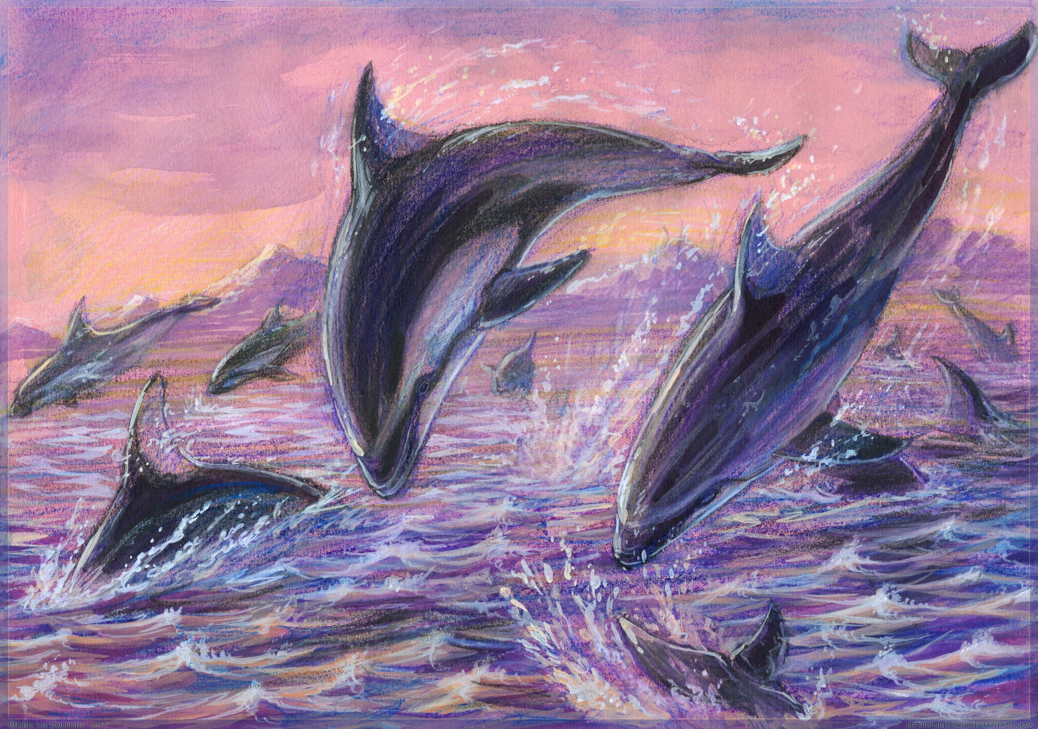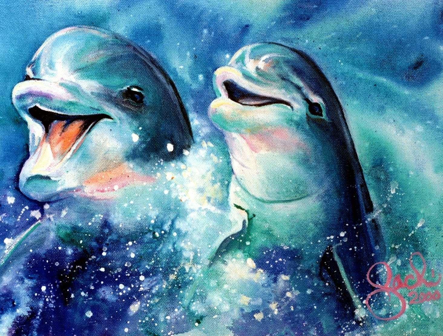 Девять дельфинов на картинке