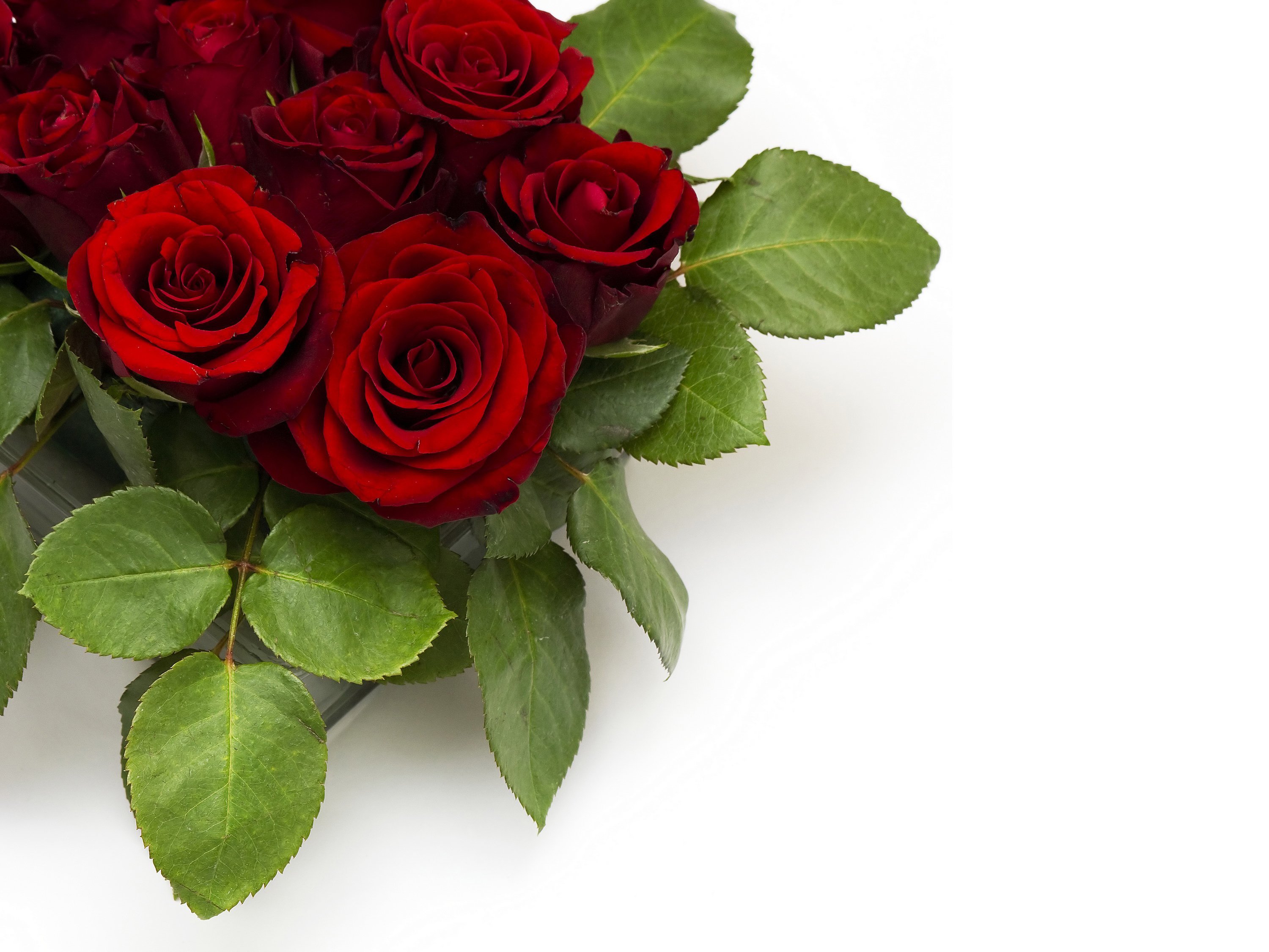 Фото: Красные розы на белом фоне