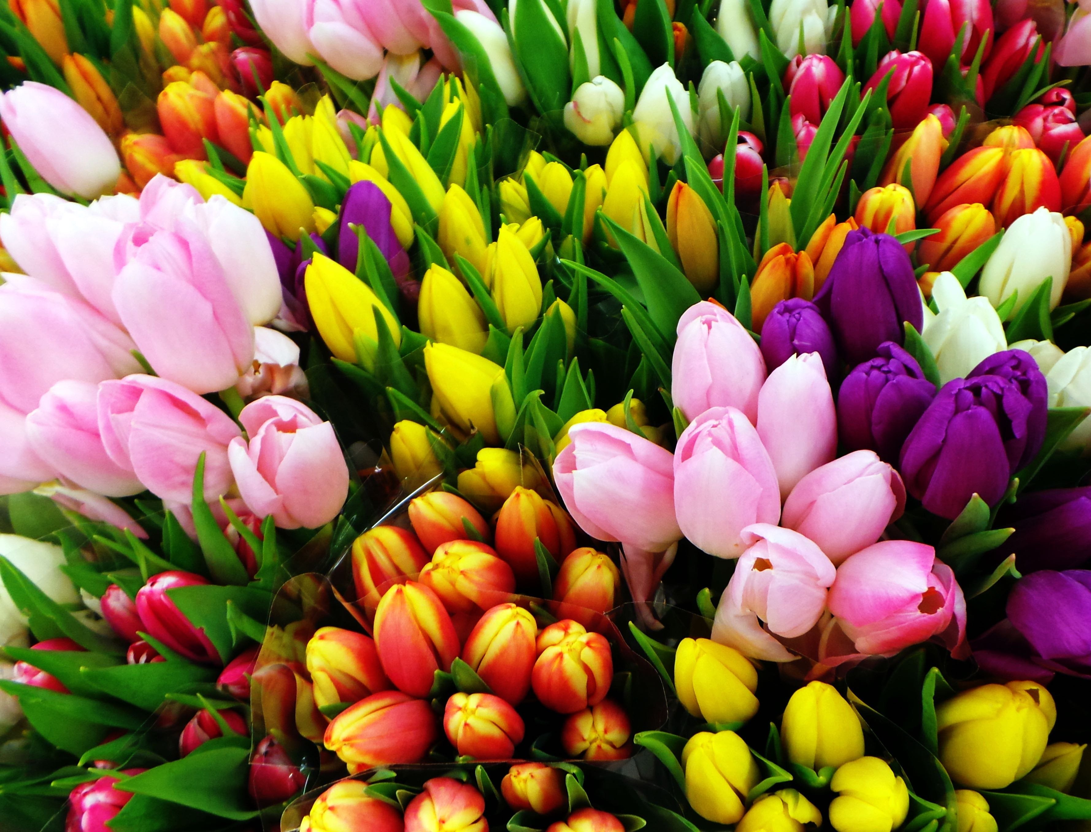 Огромный букет разноцветных тюльпанов