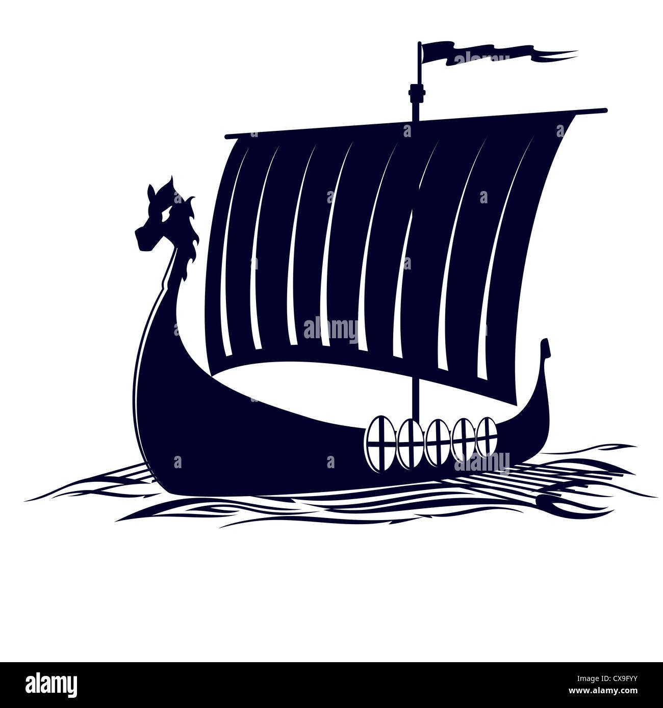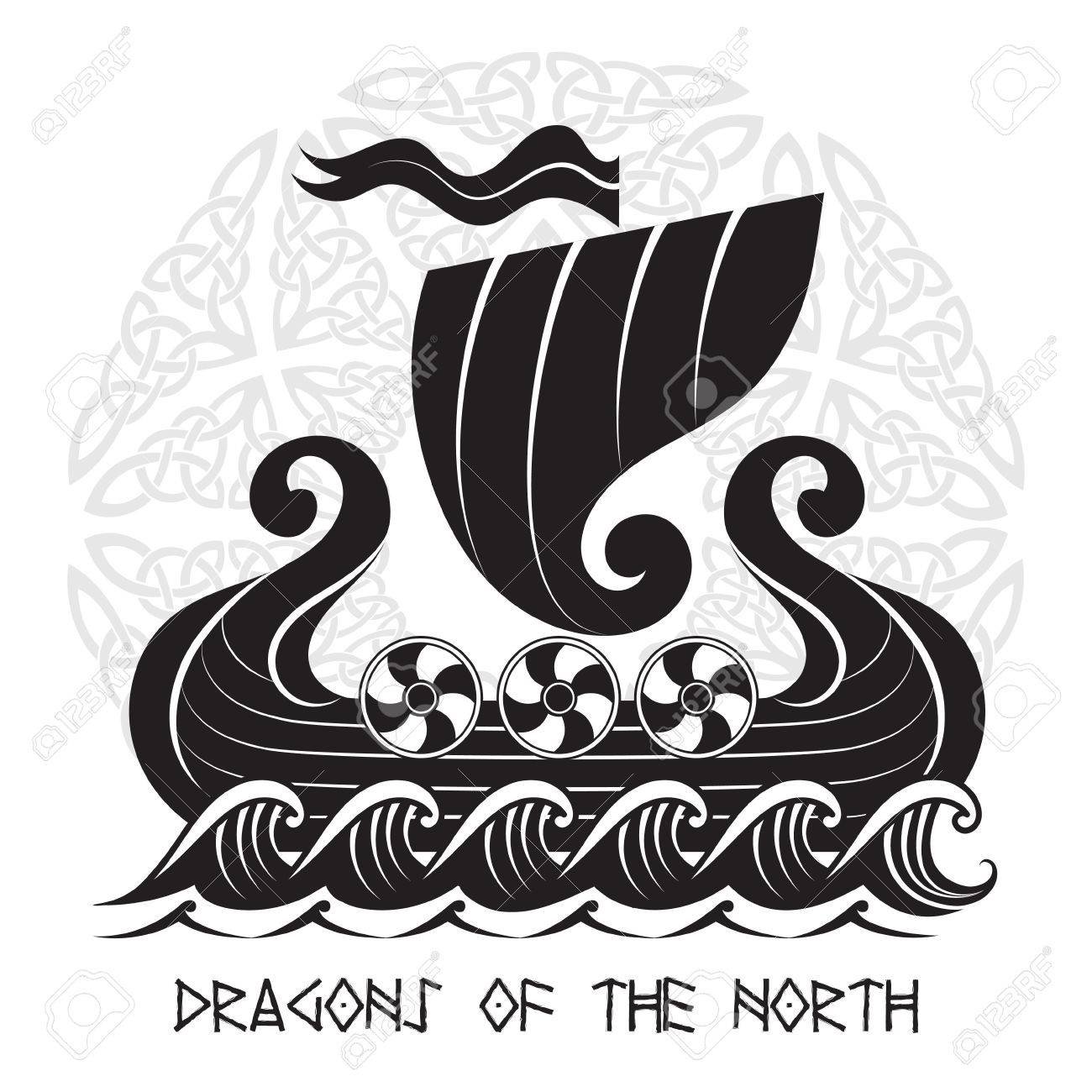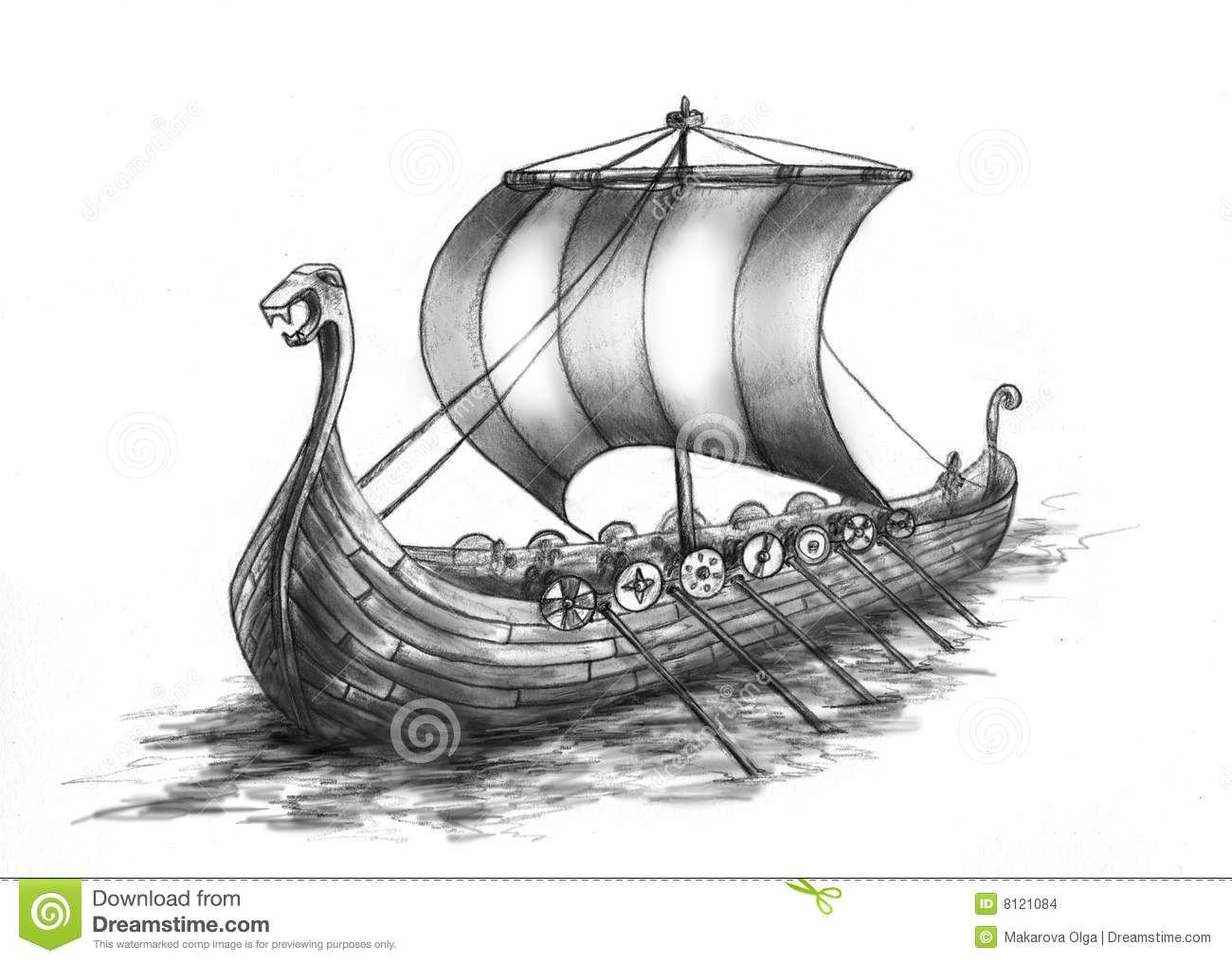 Корабль викингов на белом фонеФото: Драккар сбоку вектор