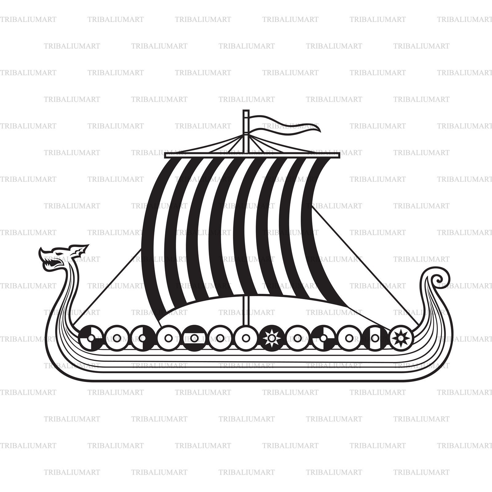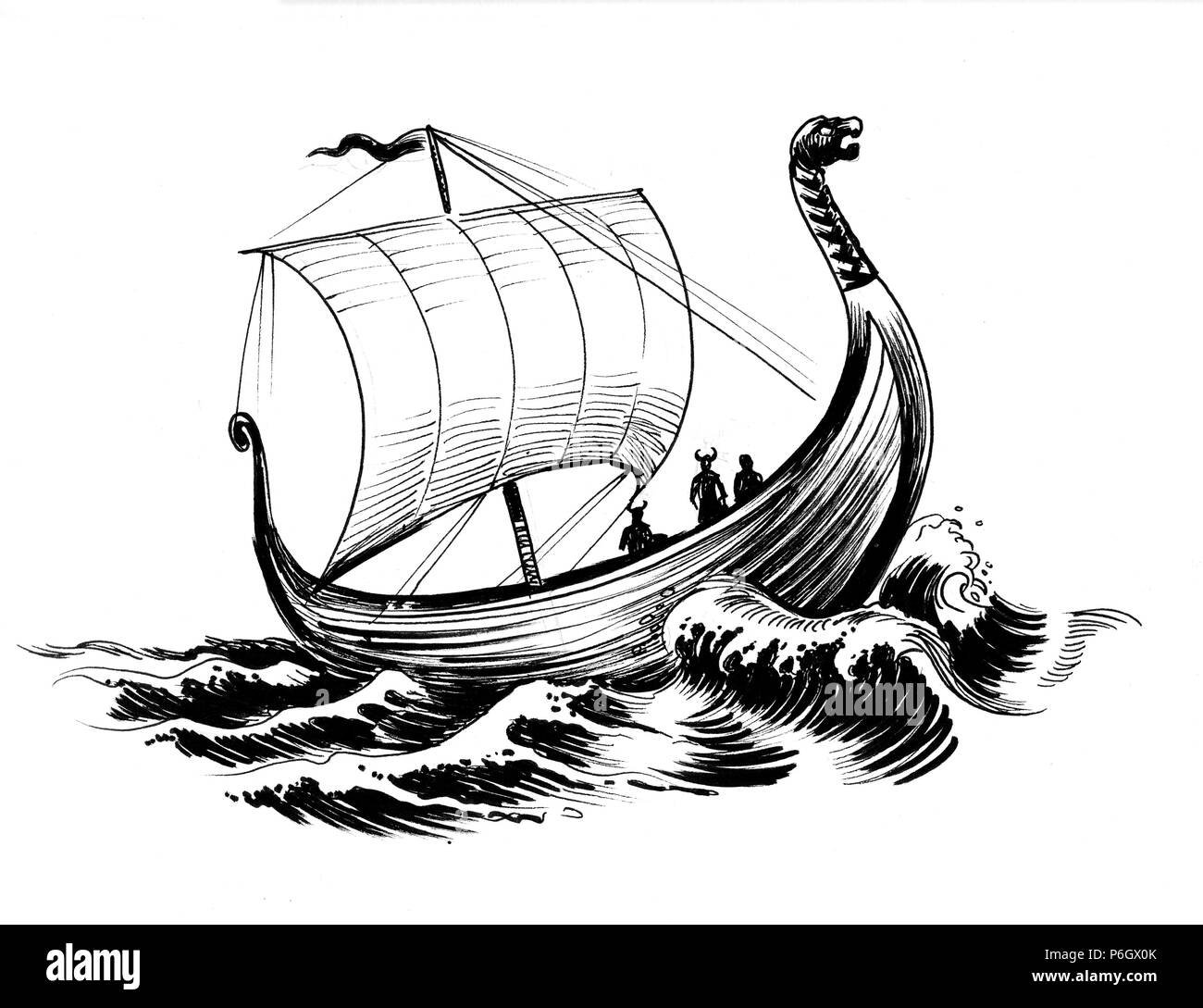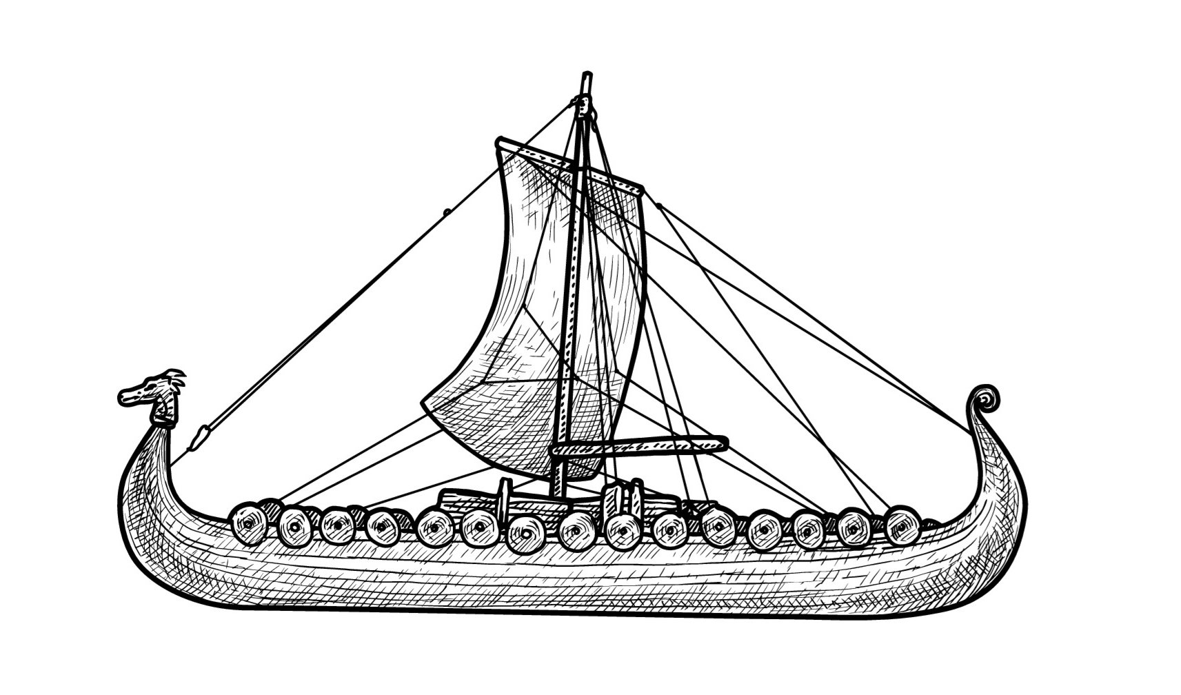 Корабль викингов на белом фонеФото: Драккар сбоку вектор