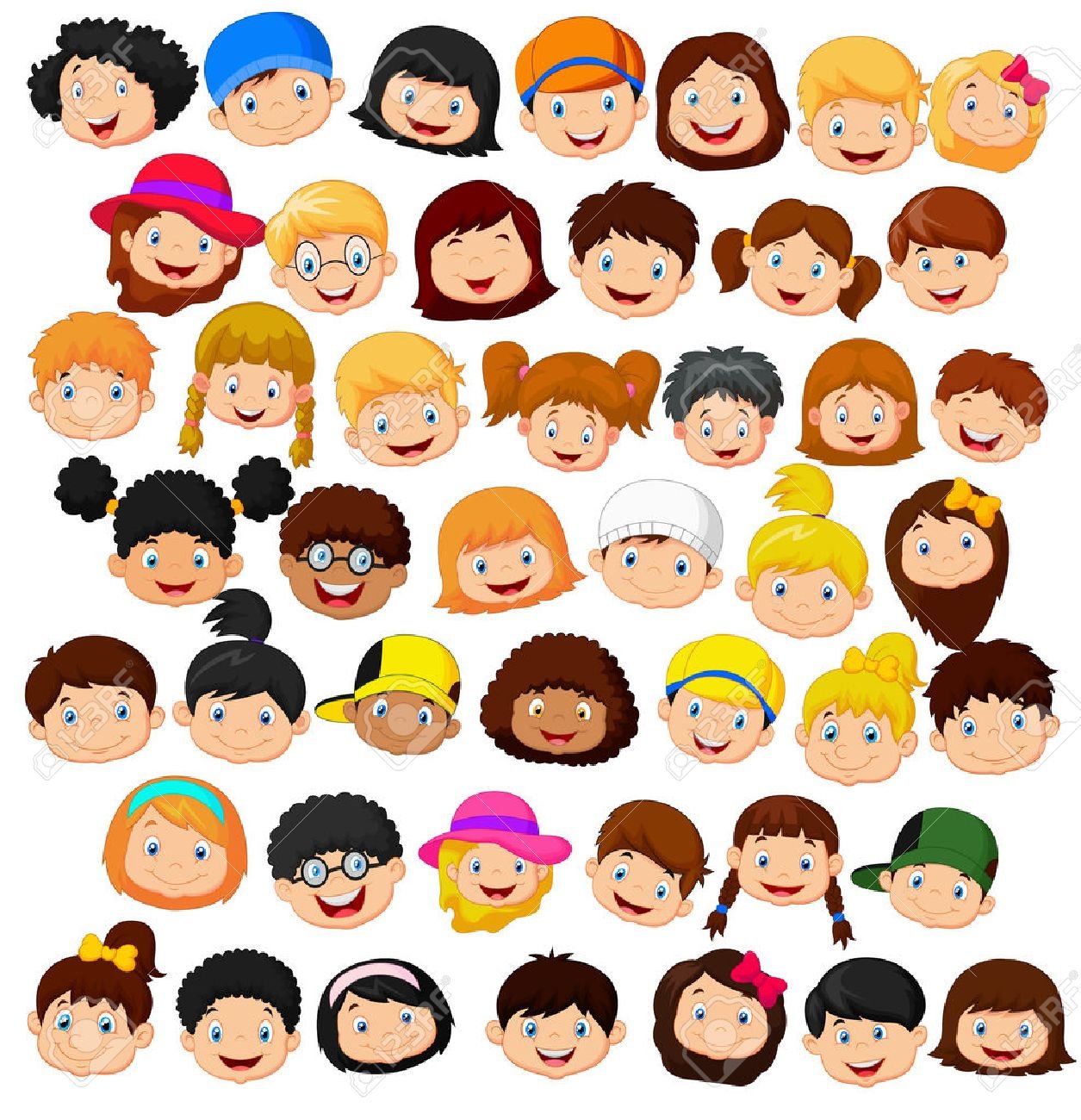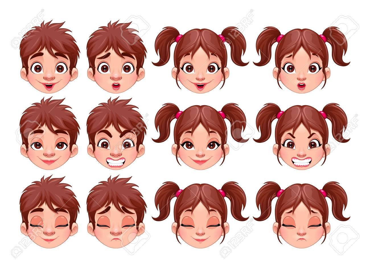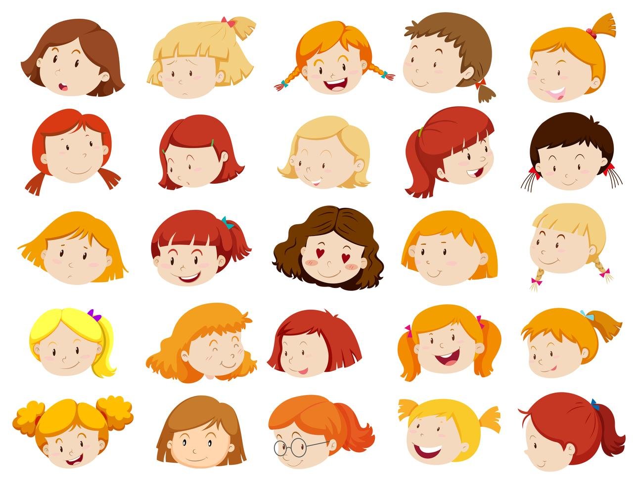 Мультяшные лица девочек и мальчиков