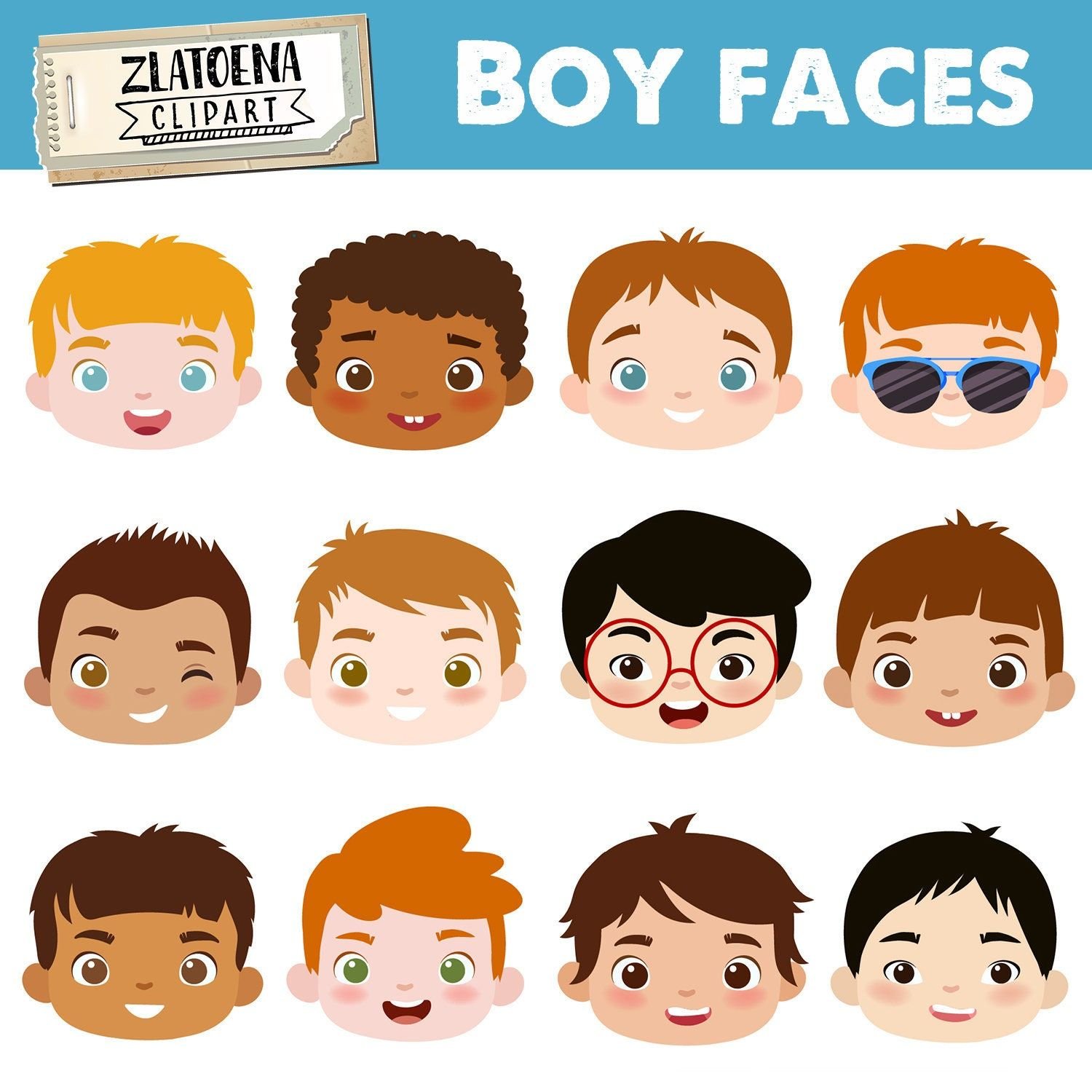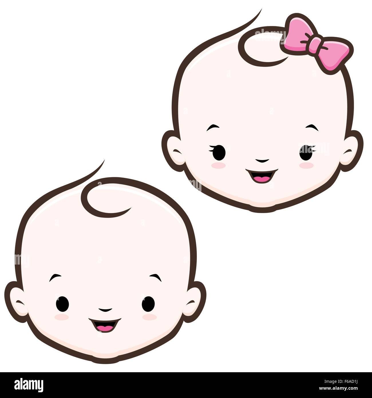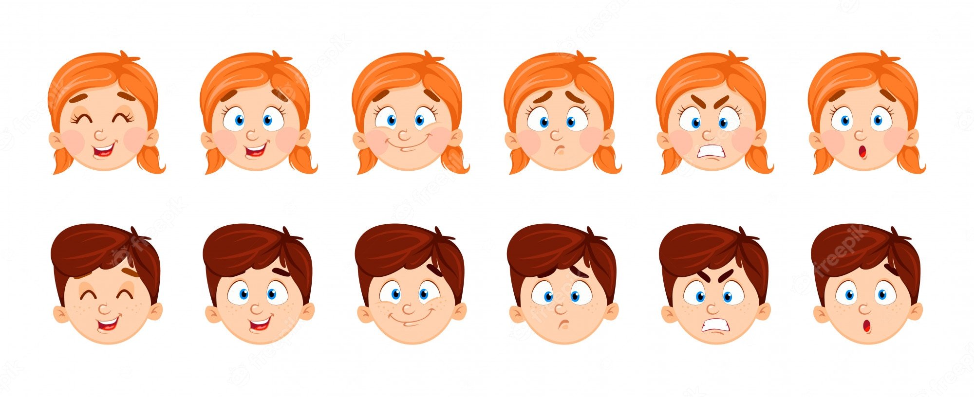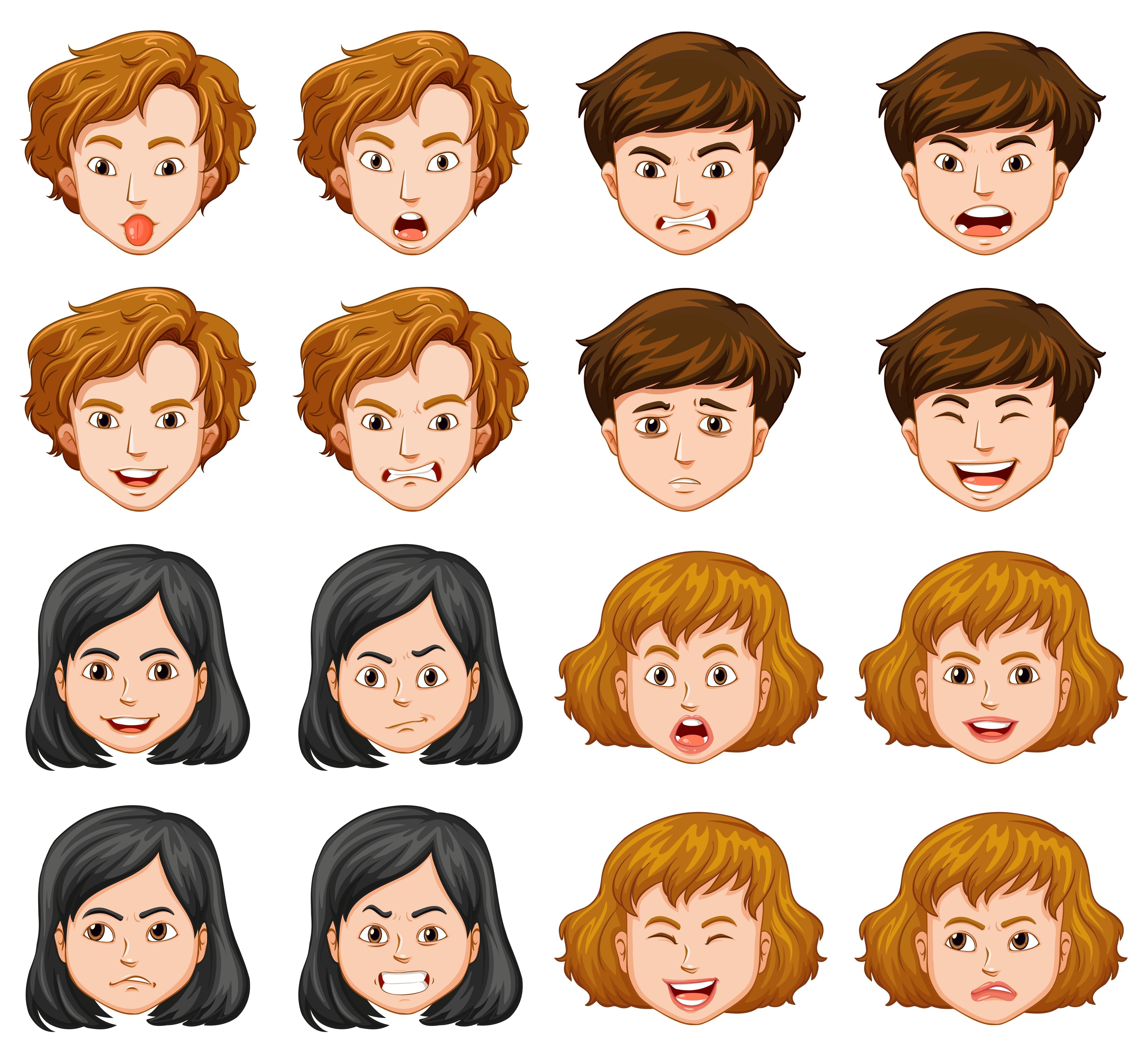 Мультяшные лица девочек и мальчиков
