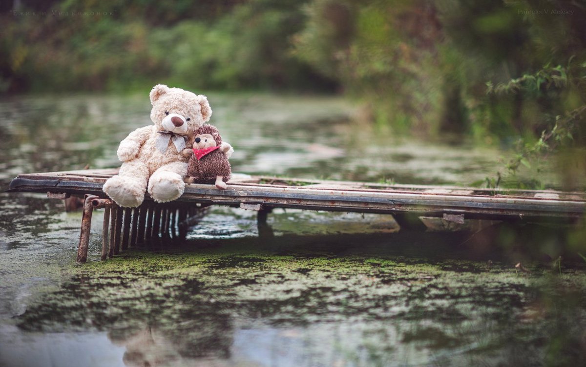 Медведь обнимает ежика