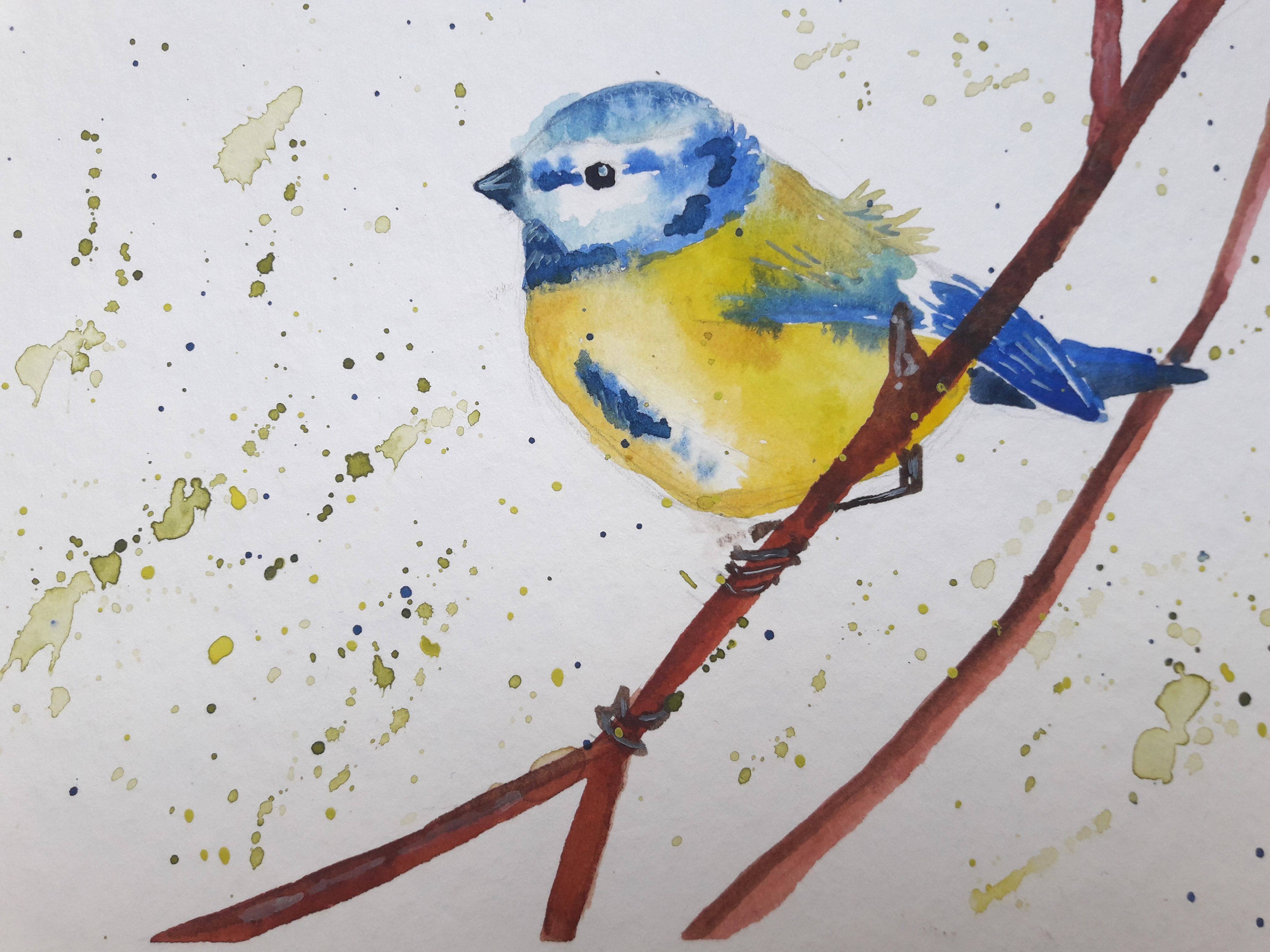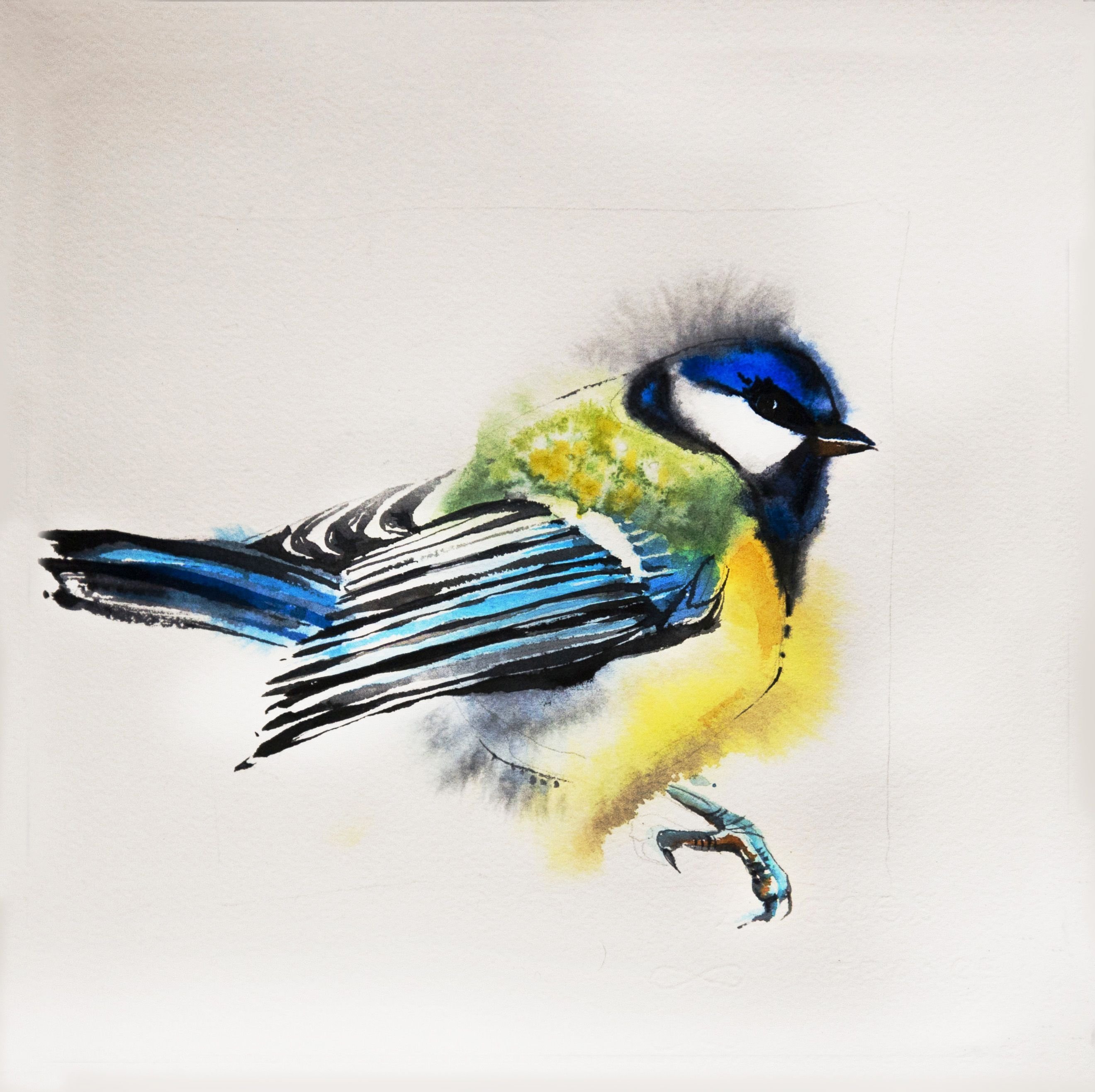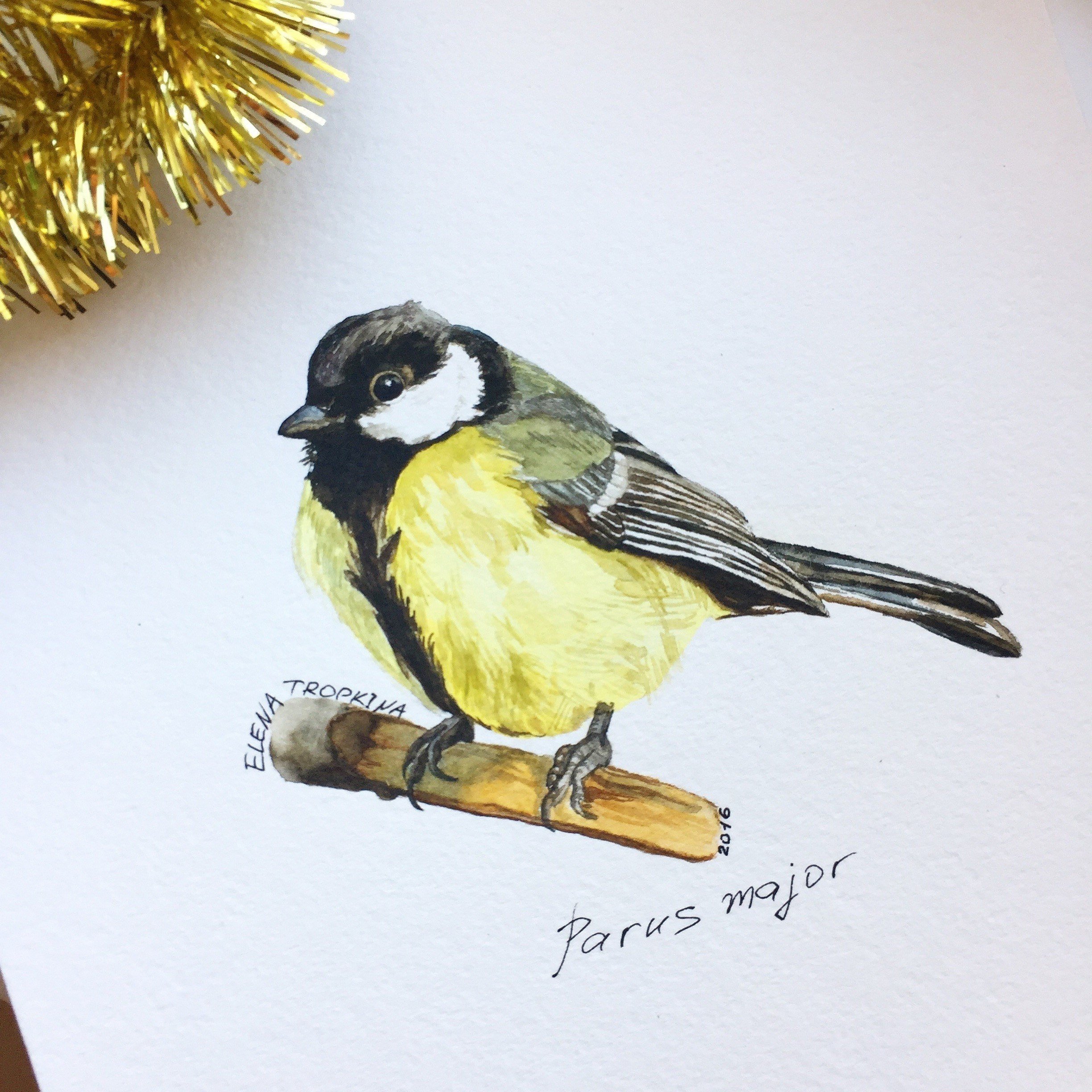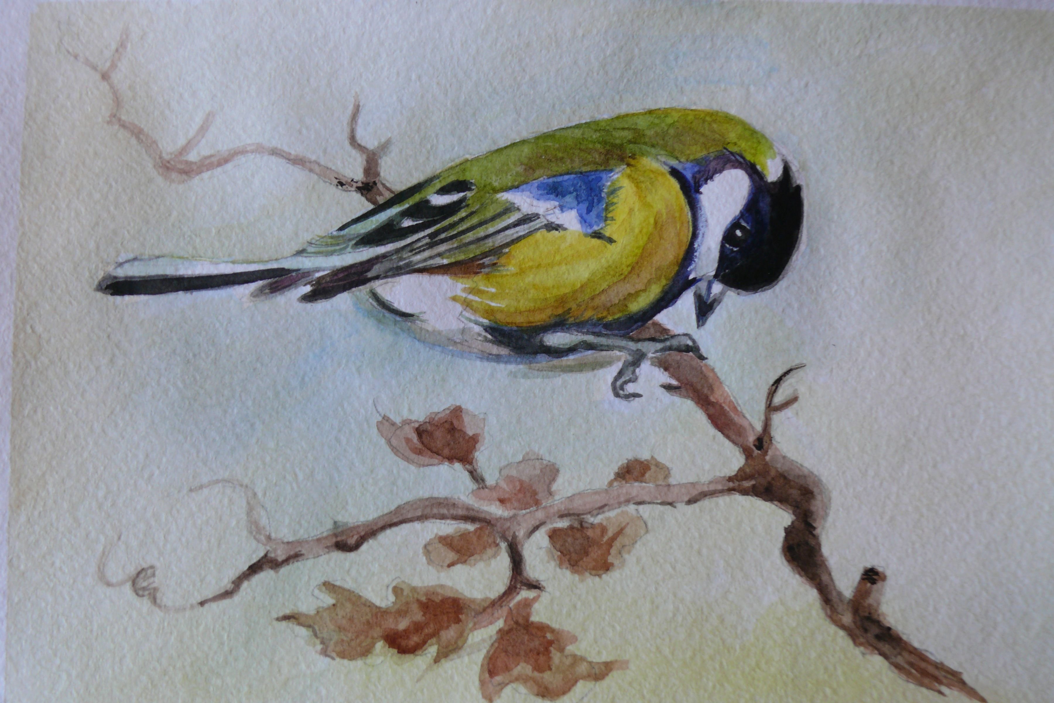 Большая синица акварель