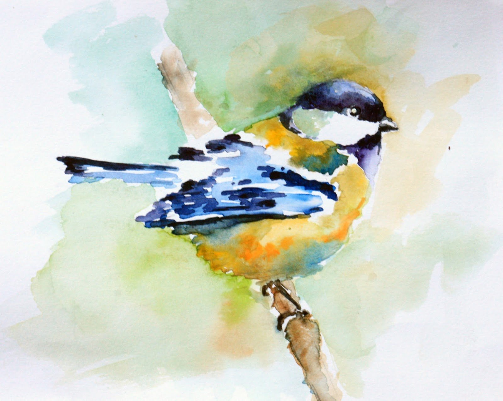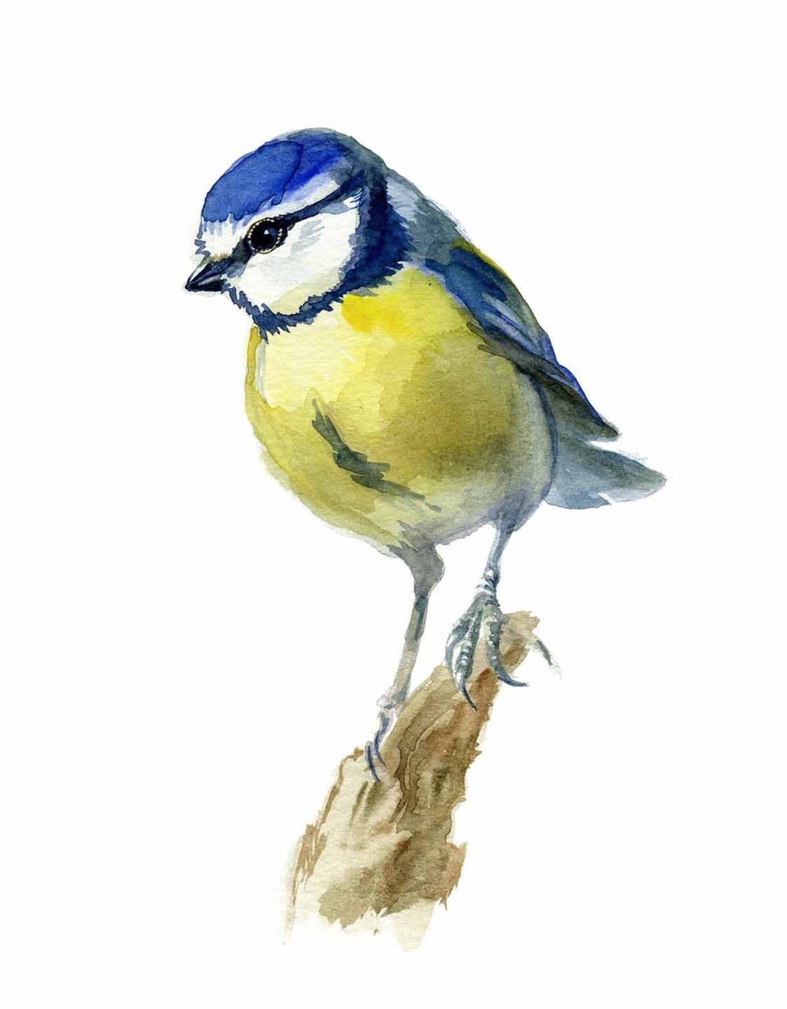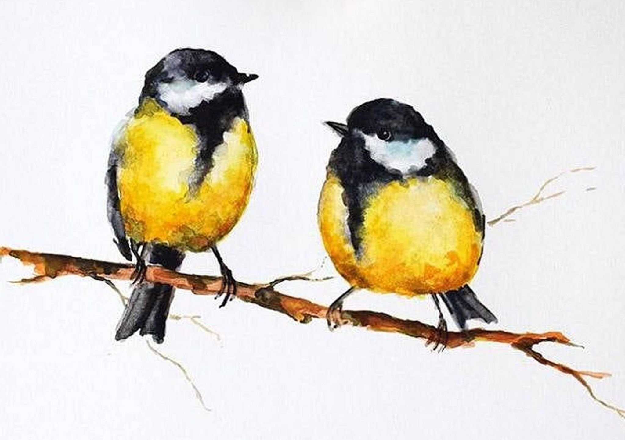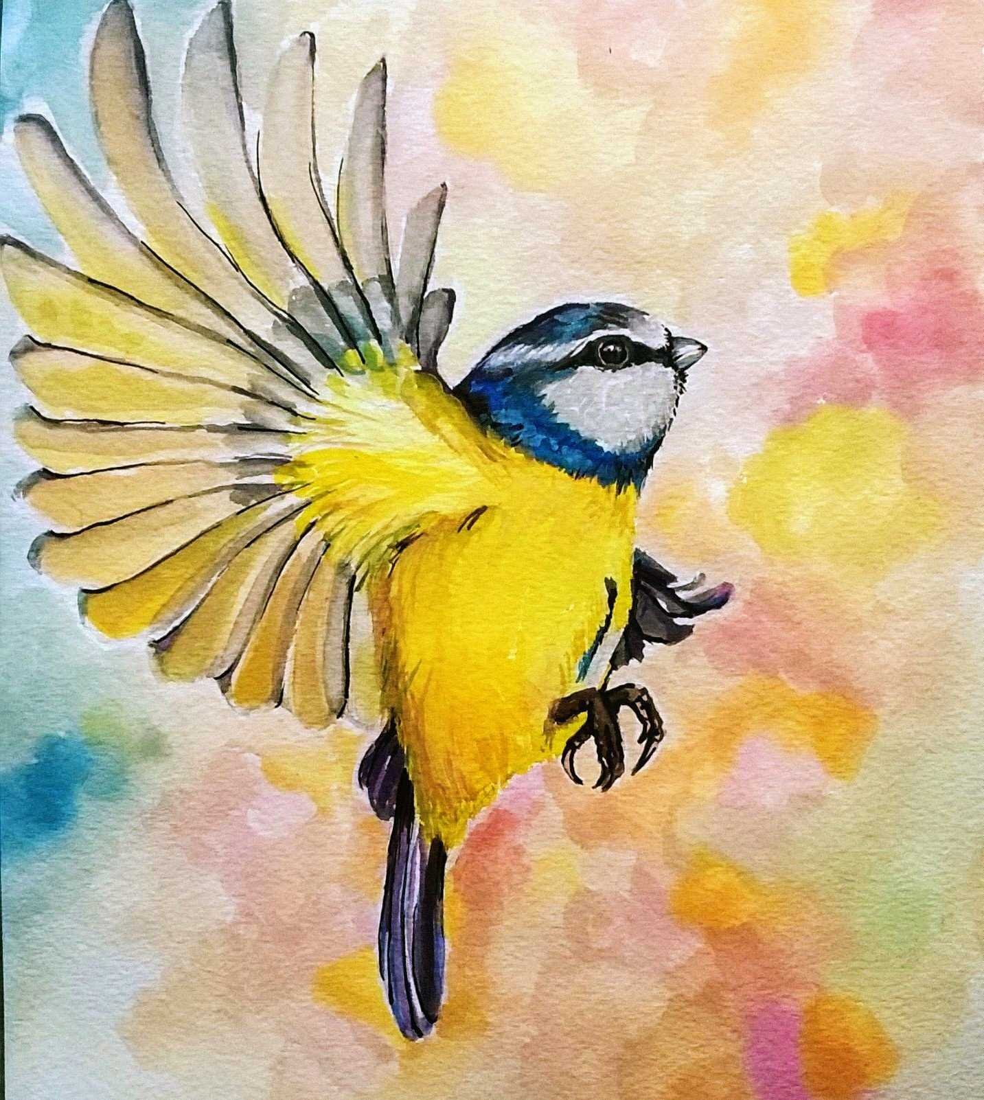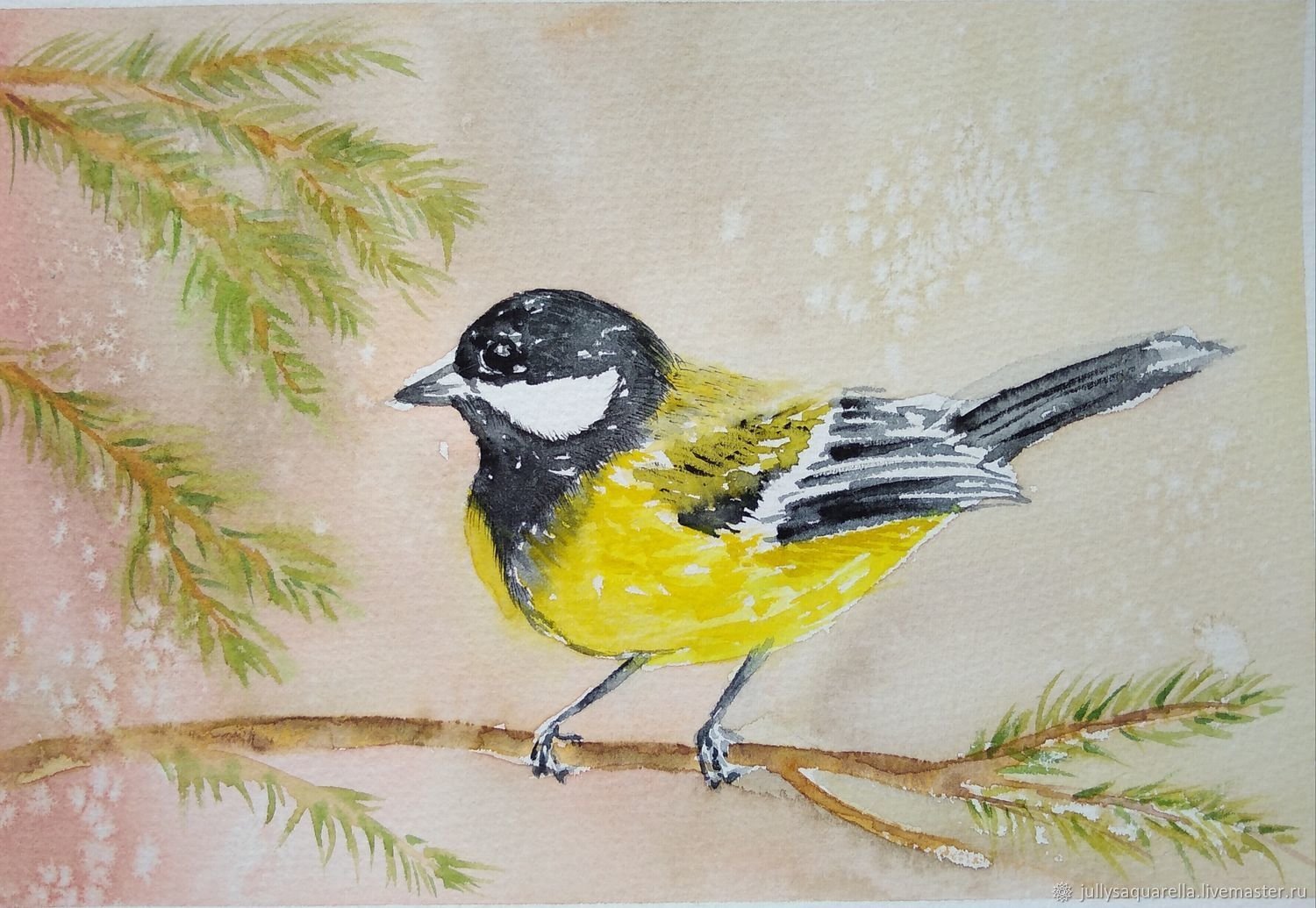 Большая синица акварель