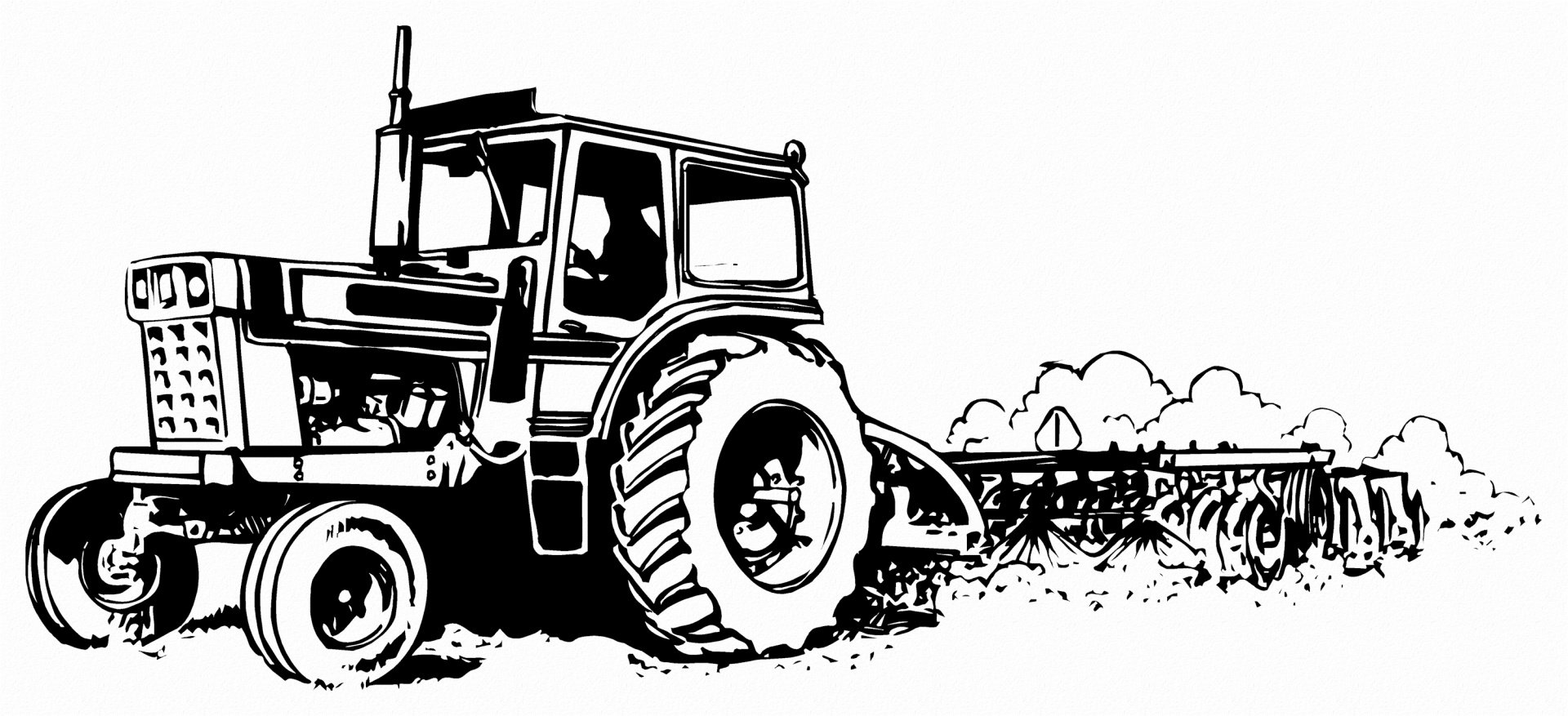 Трактор черно белая картинка