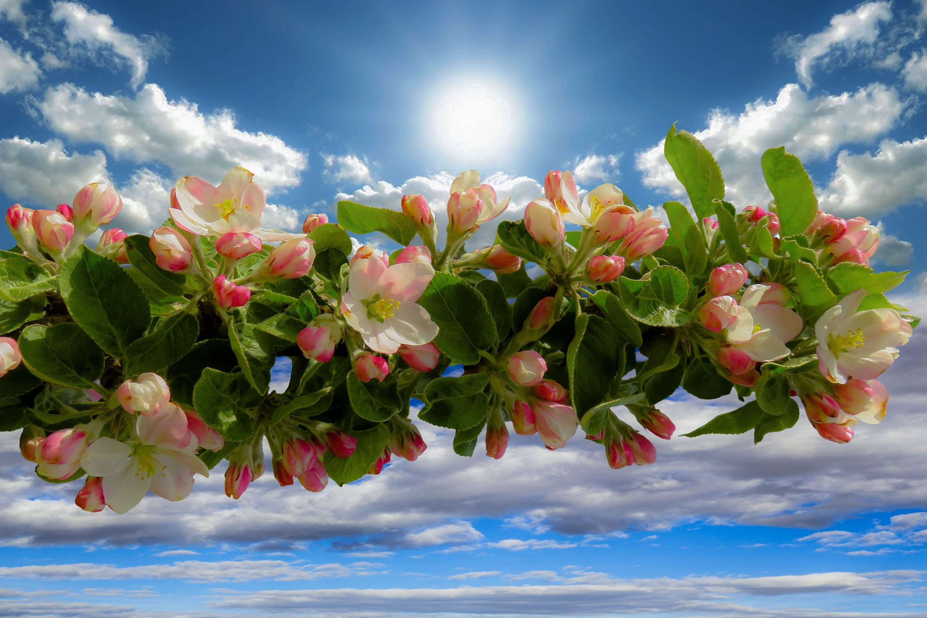 Фото: Цветущая яблоня в лучах солнца