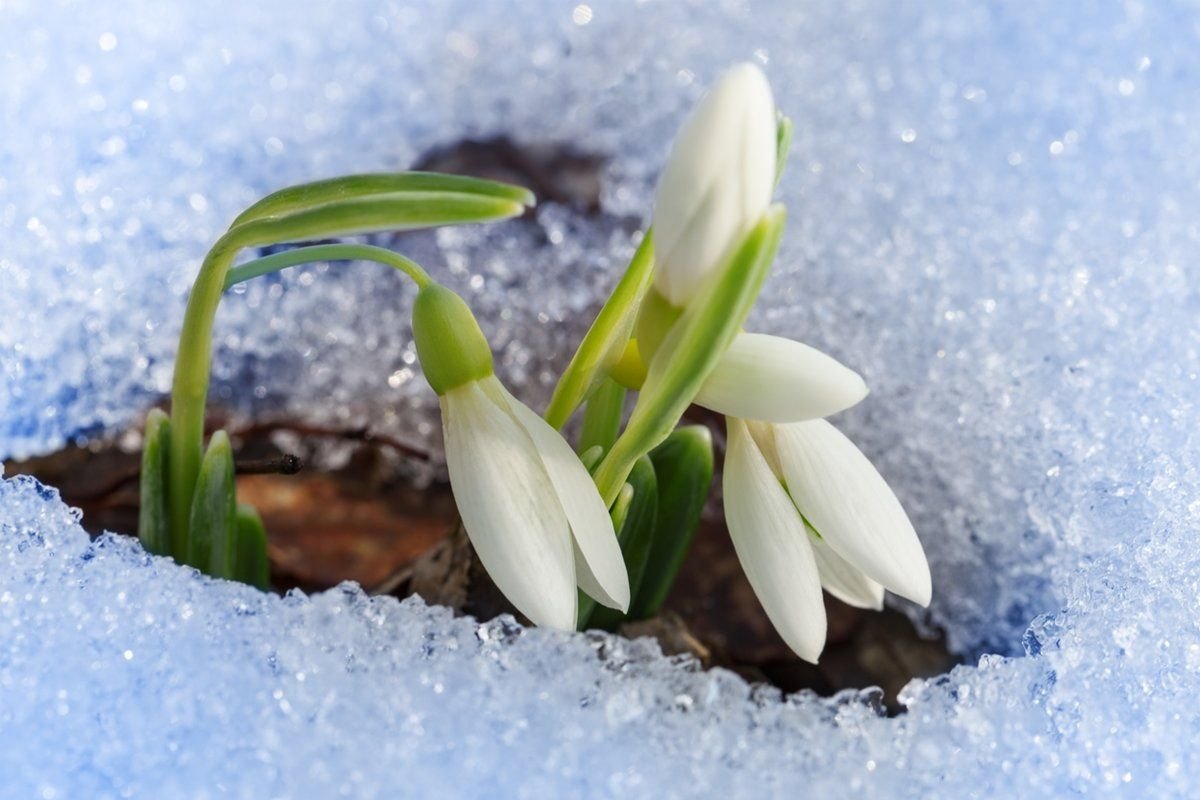Фото: Подснежники на фоне голубого неба