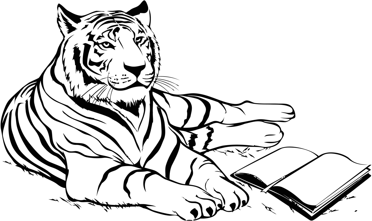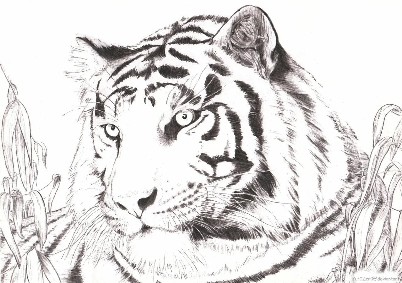 Тигр черно белый рисунок