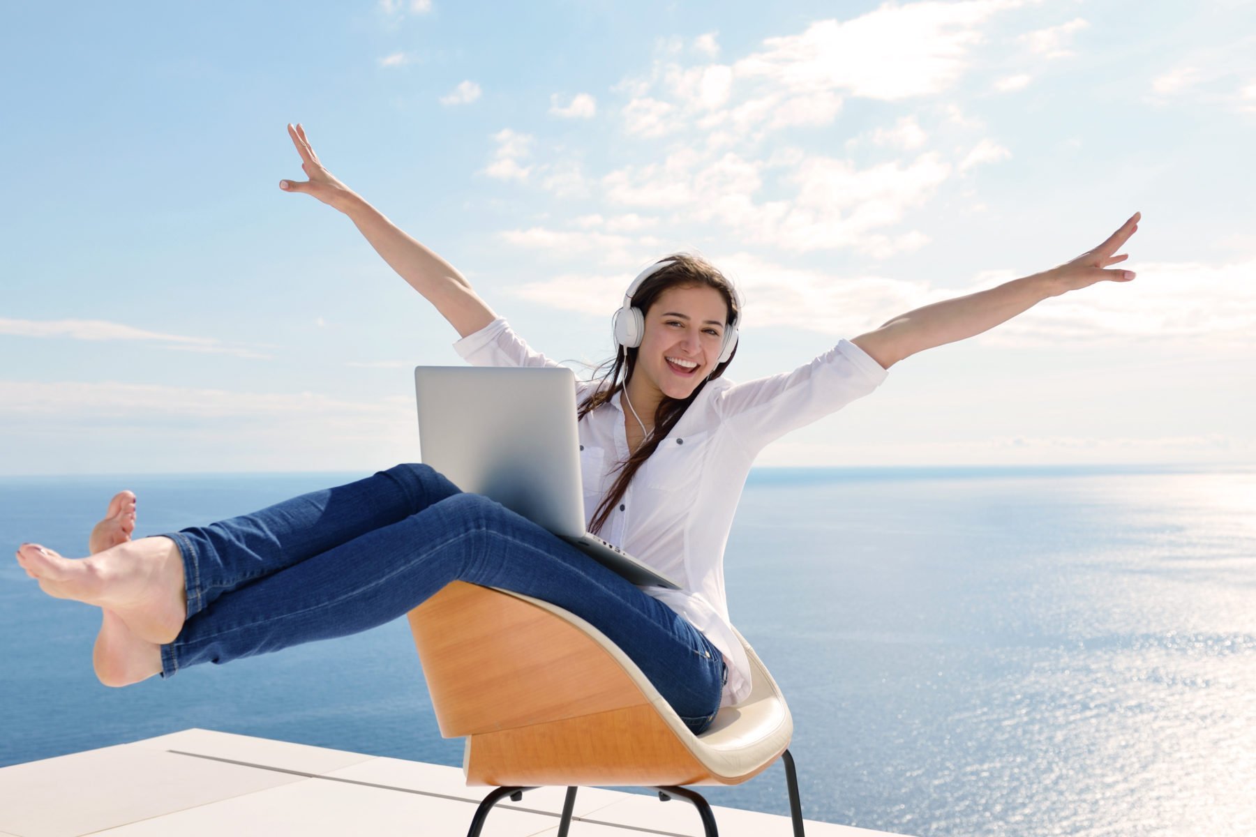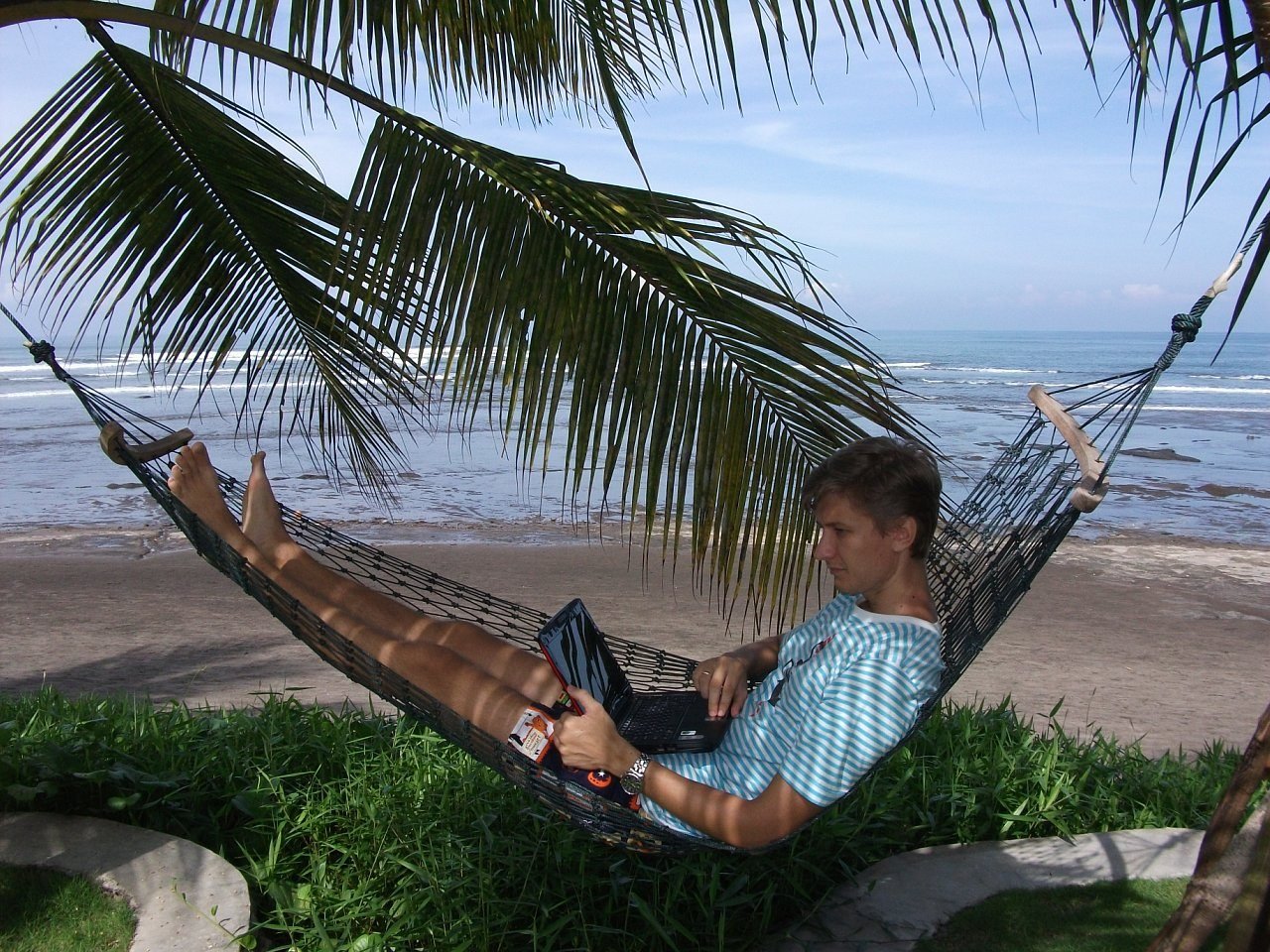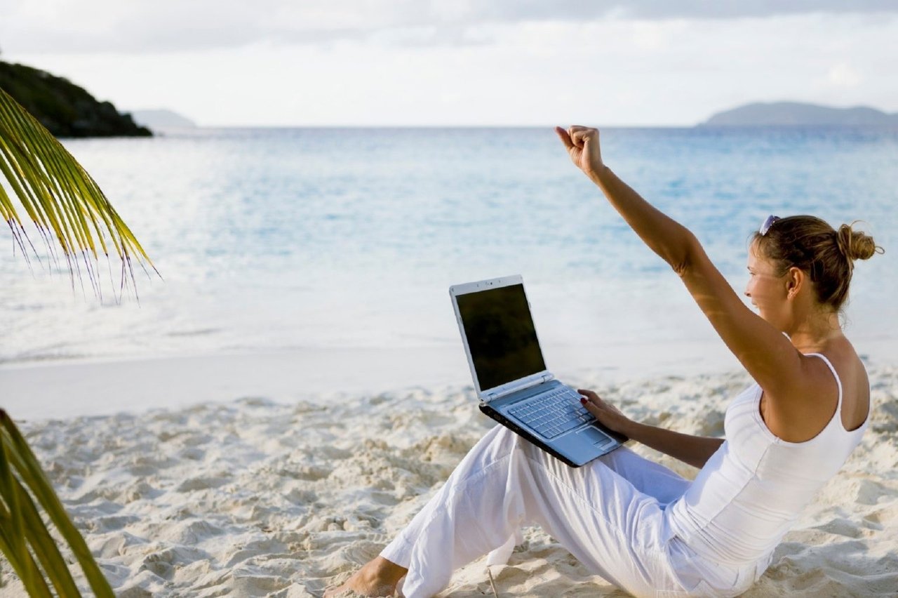 С ноутбуком на море