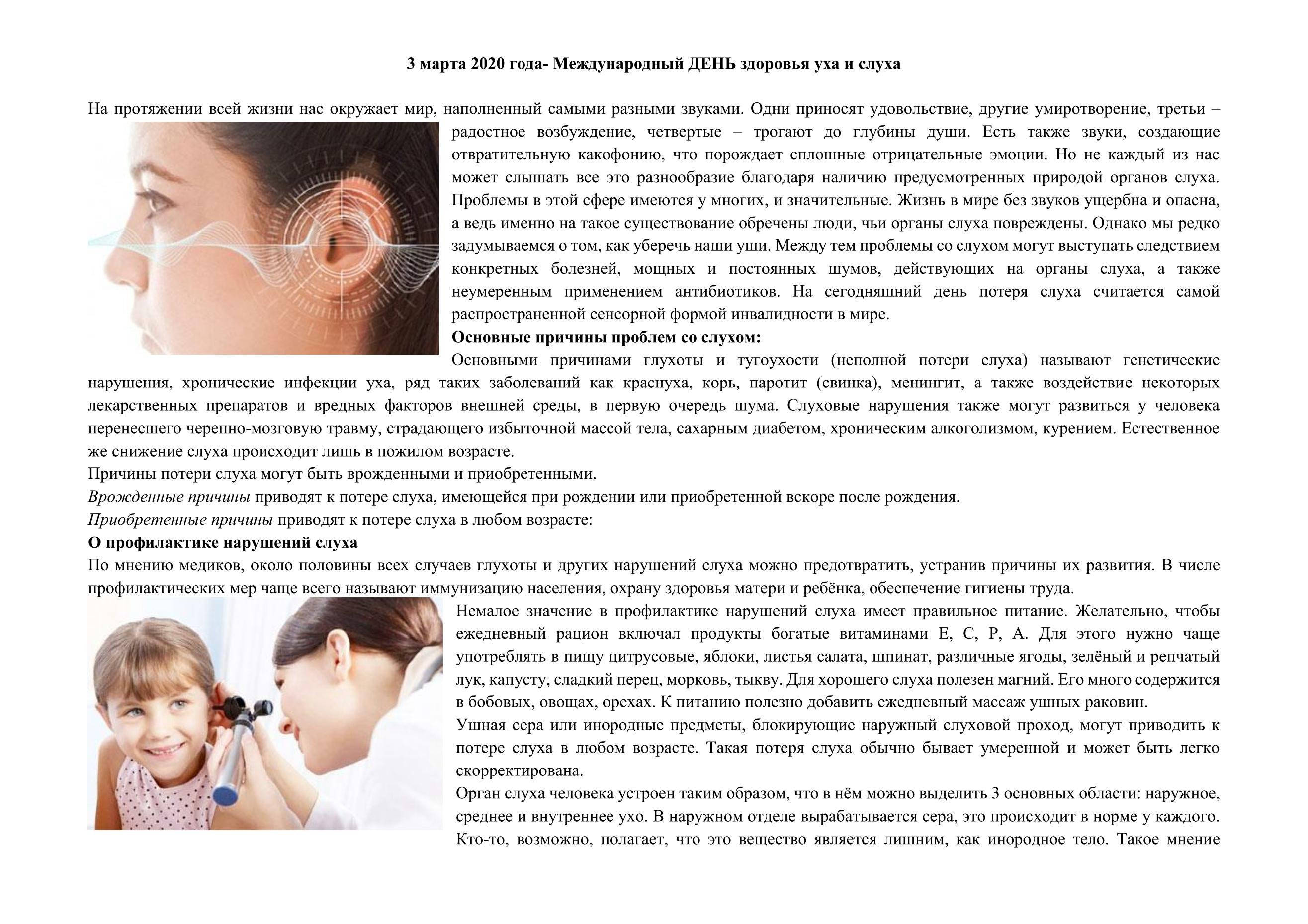 Всемирный день слуха 3 марта воз