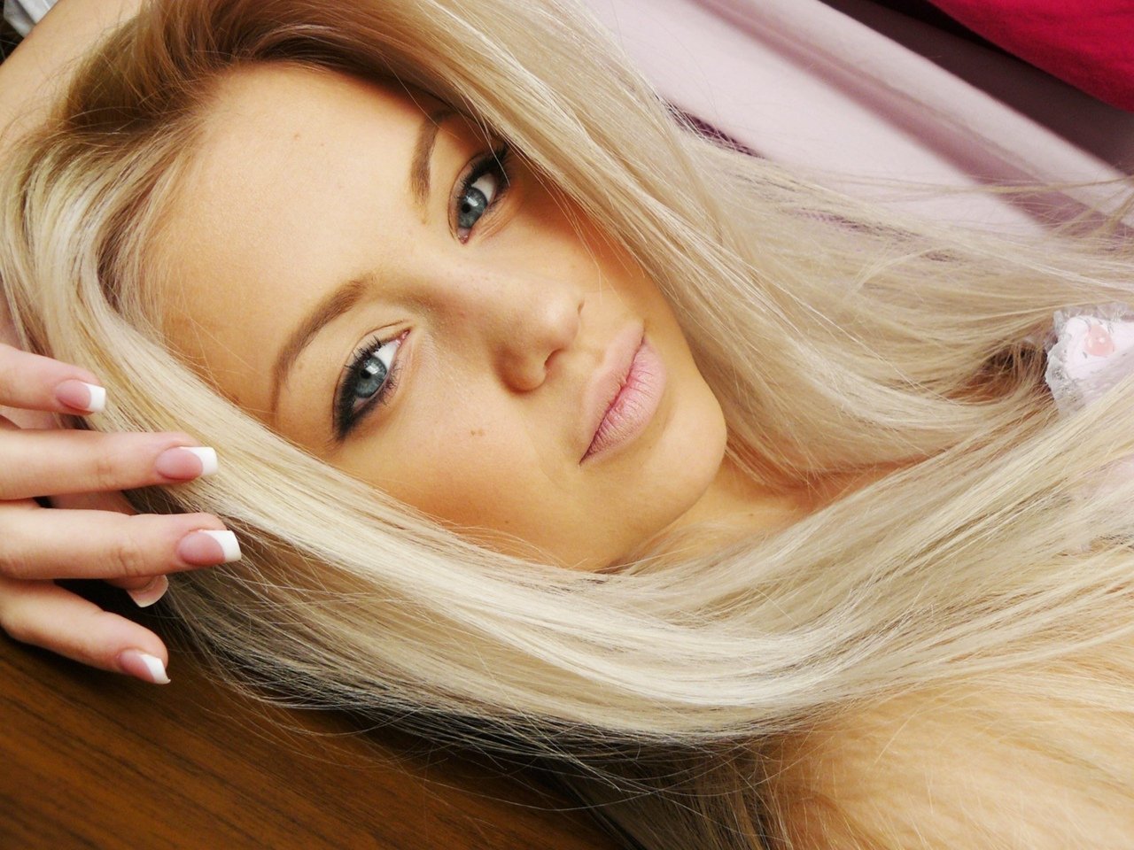 Красивая блондинка селфи