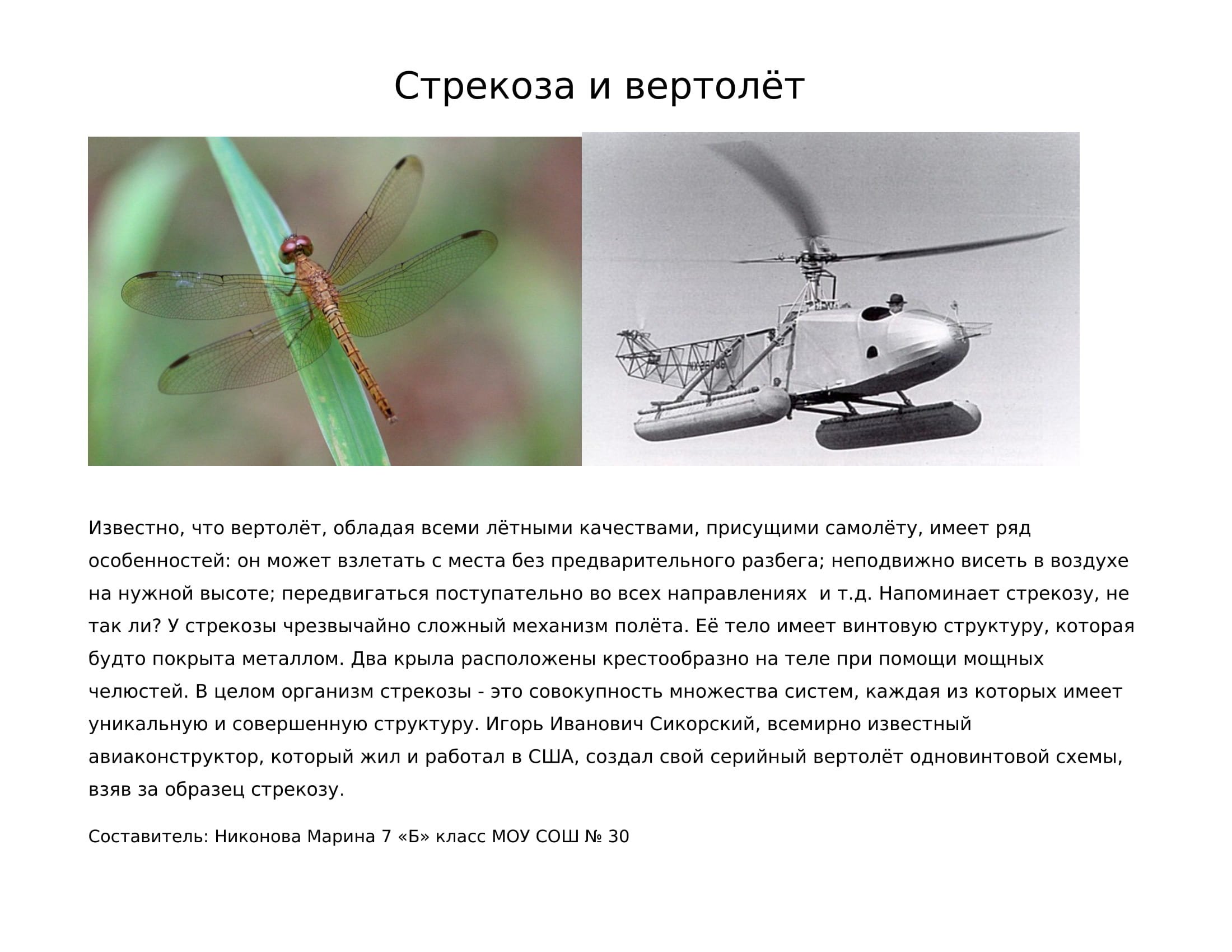 Стрекоза и вертолет Бионика