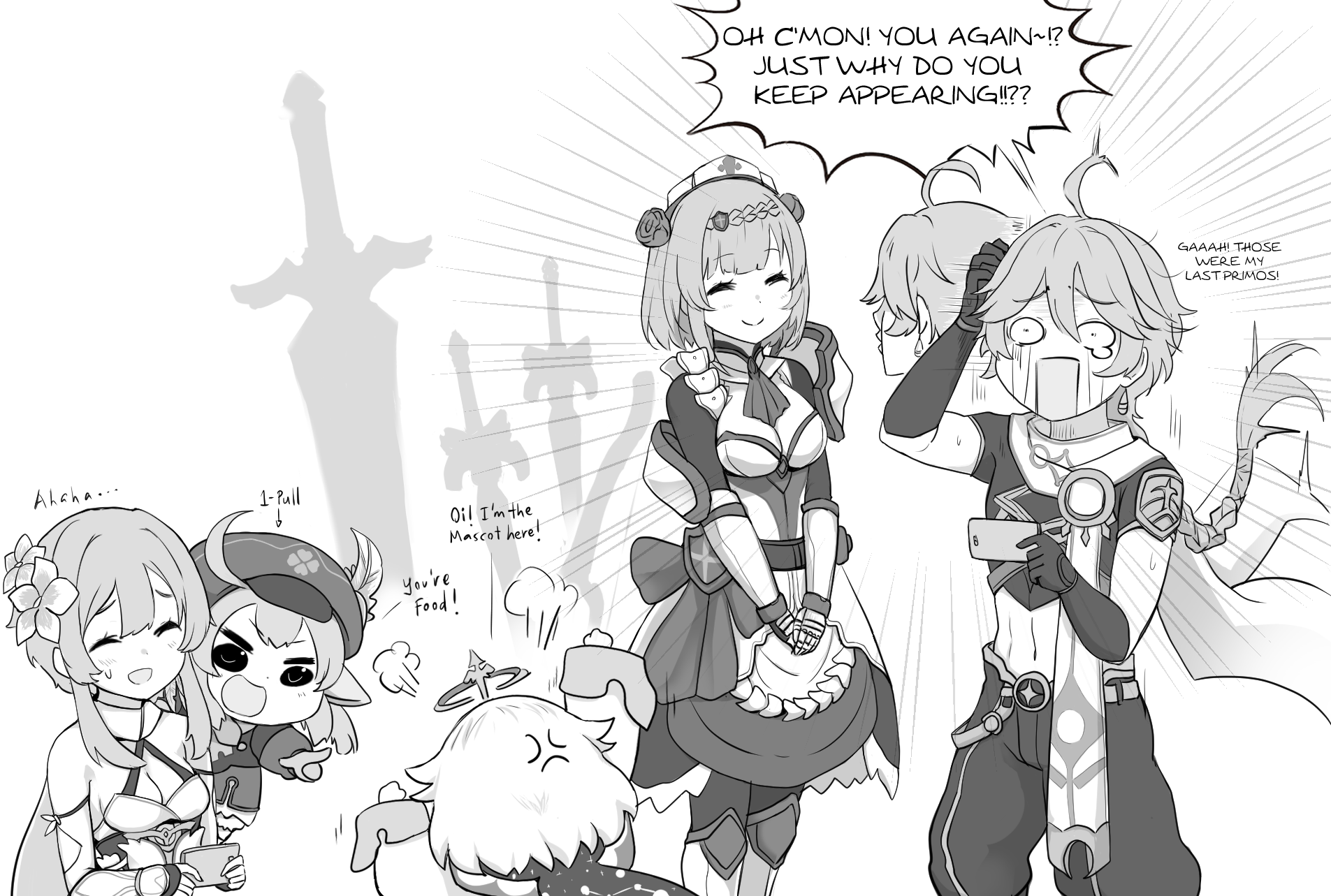 Геншин Импакт черно белые