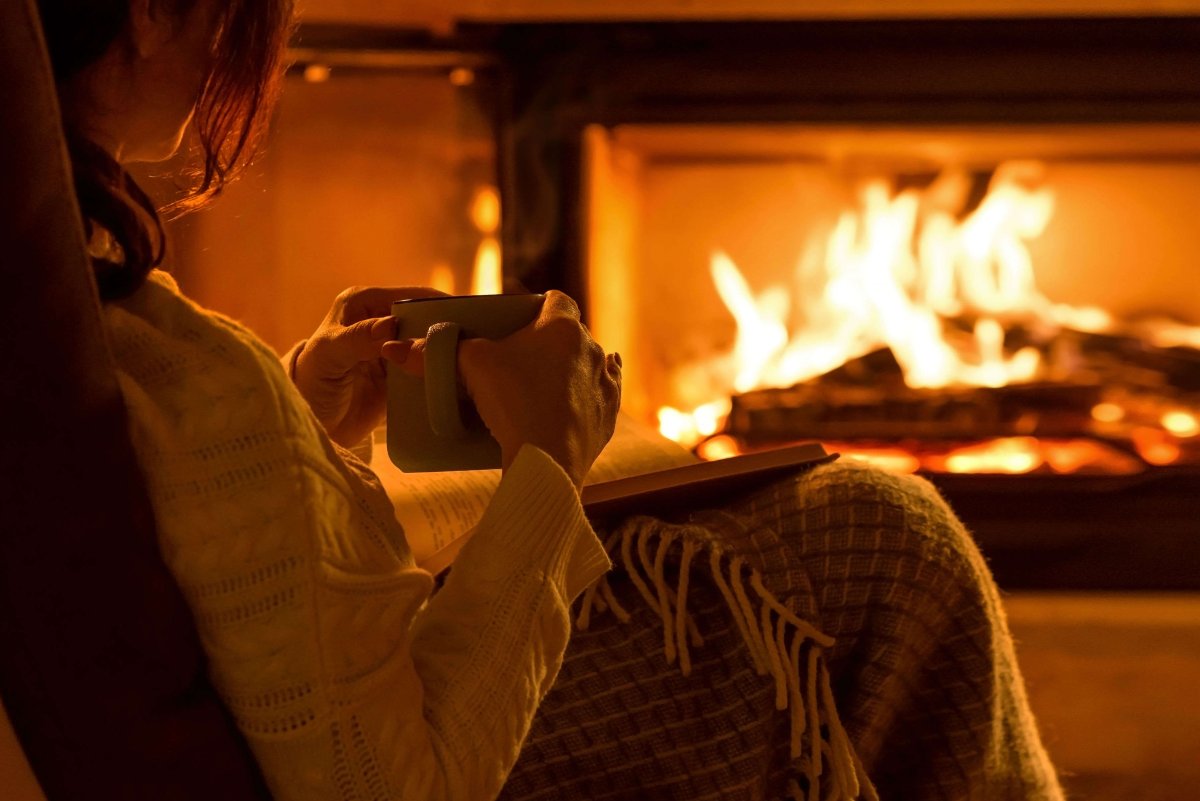 Девушка у камина с чашкой