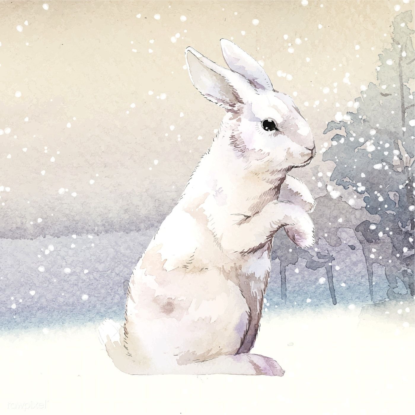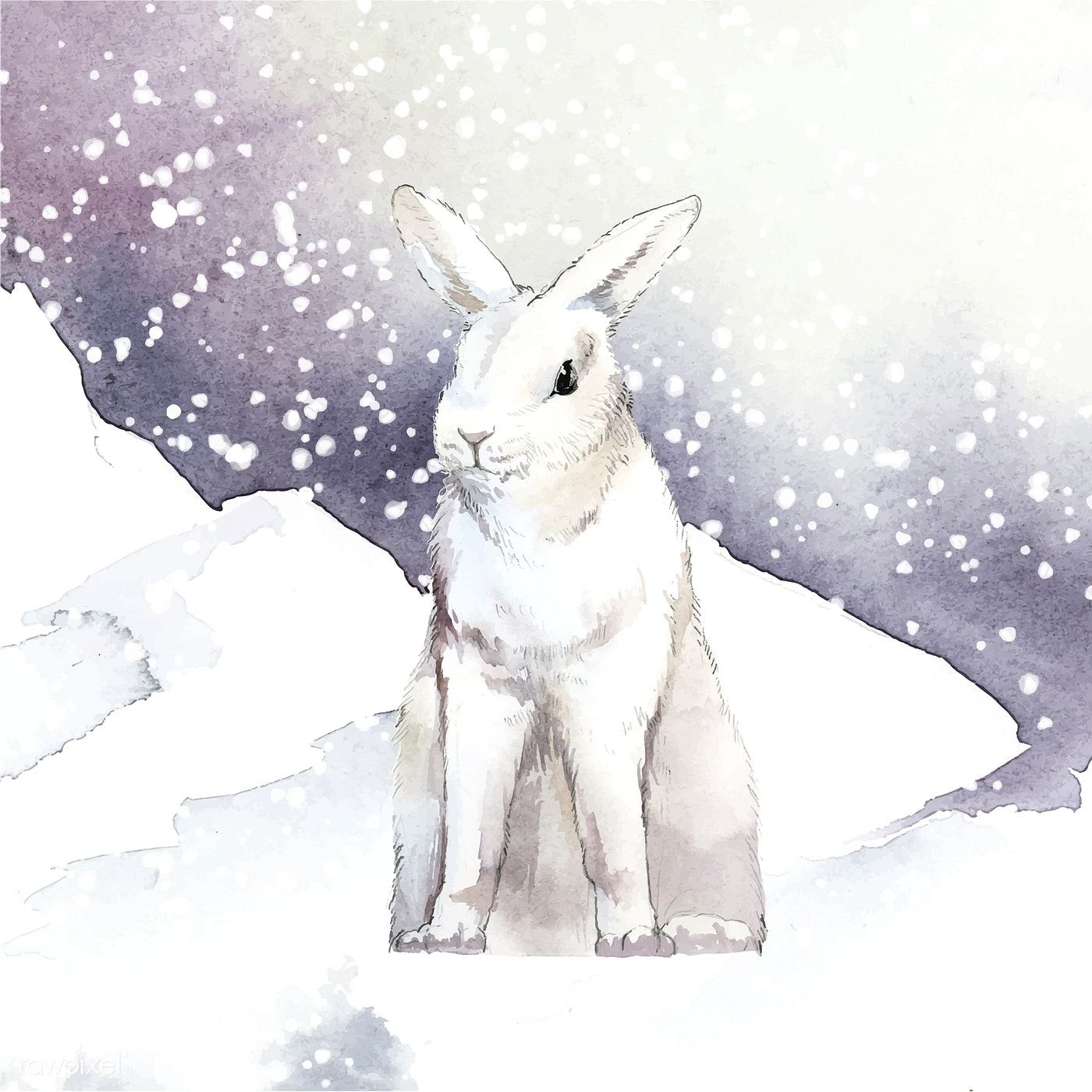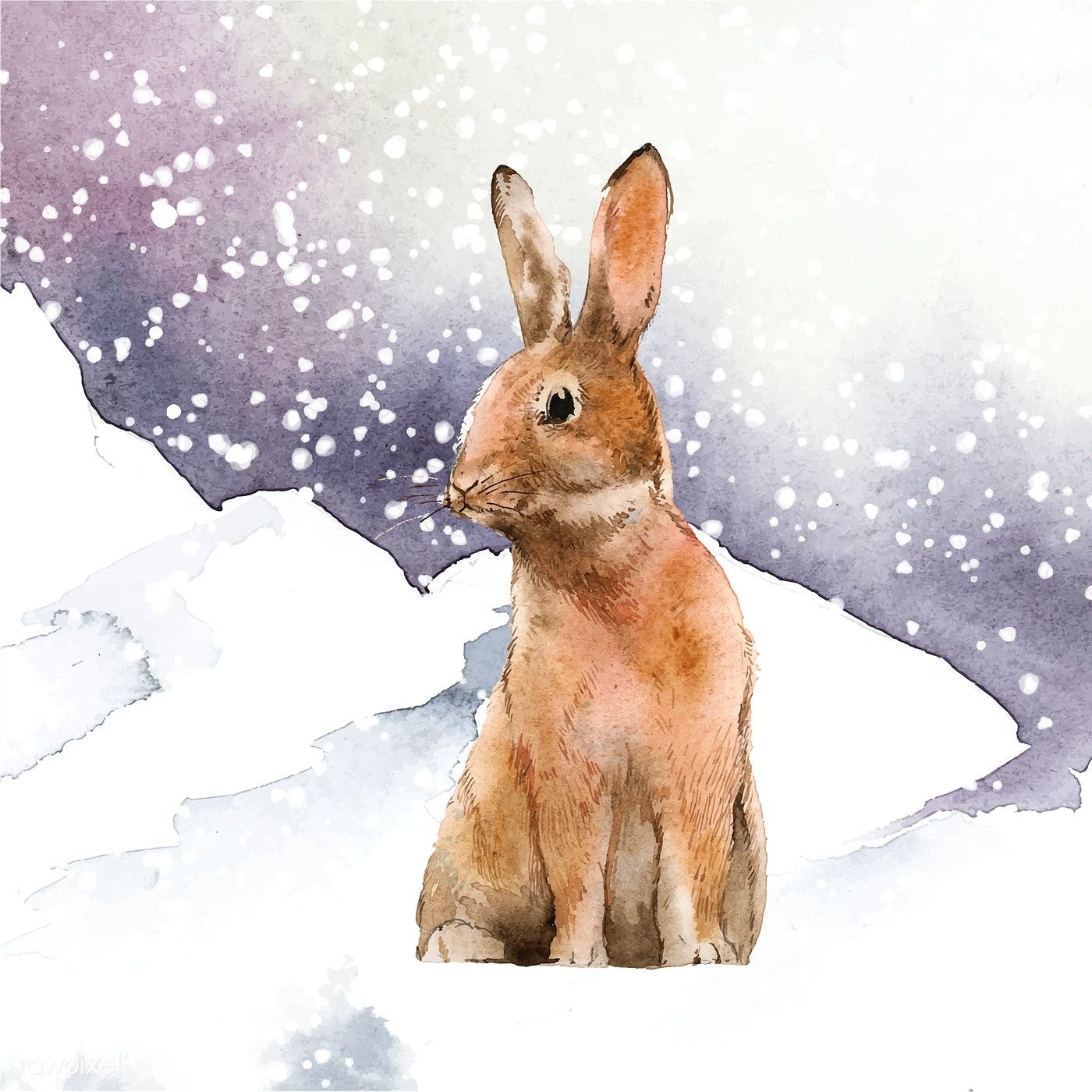 Фото: Кролик зимой акварель