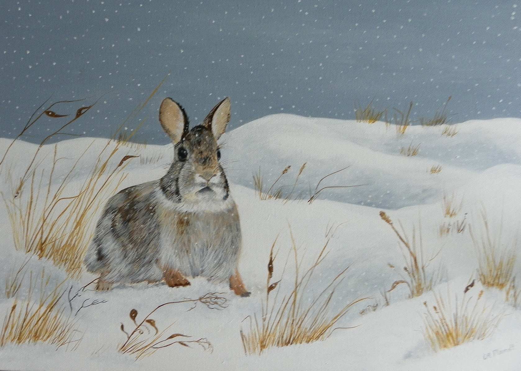 Кролик в сугробе рисунок