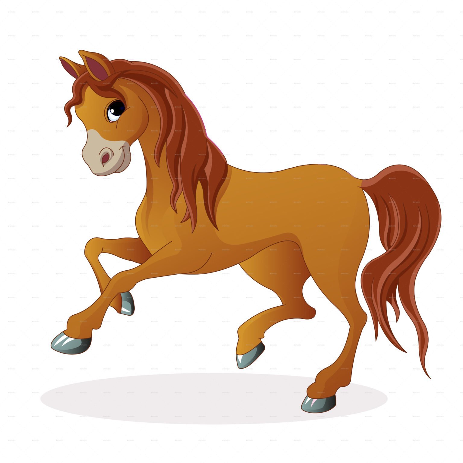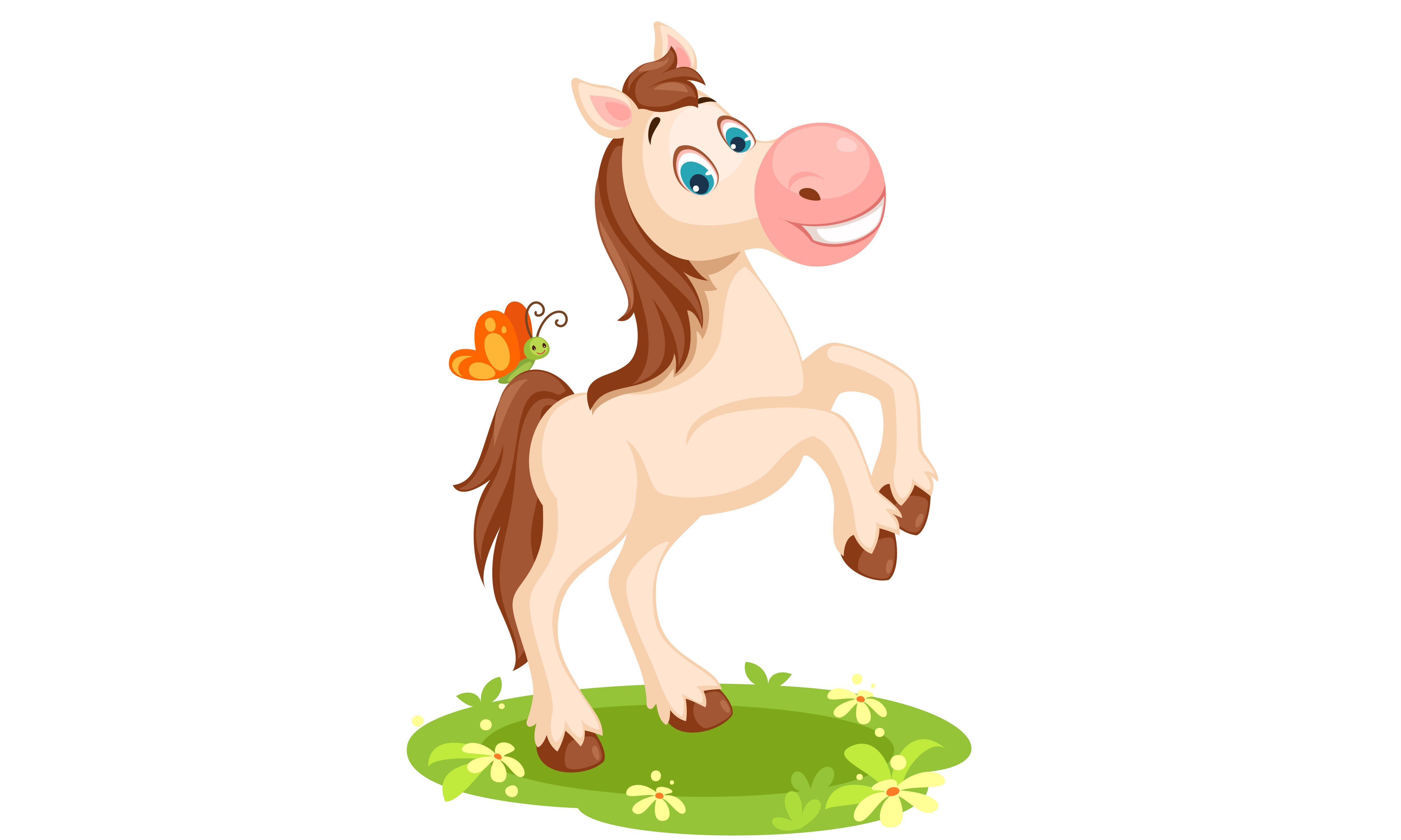 Конь мультяшный на белом фоне