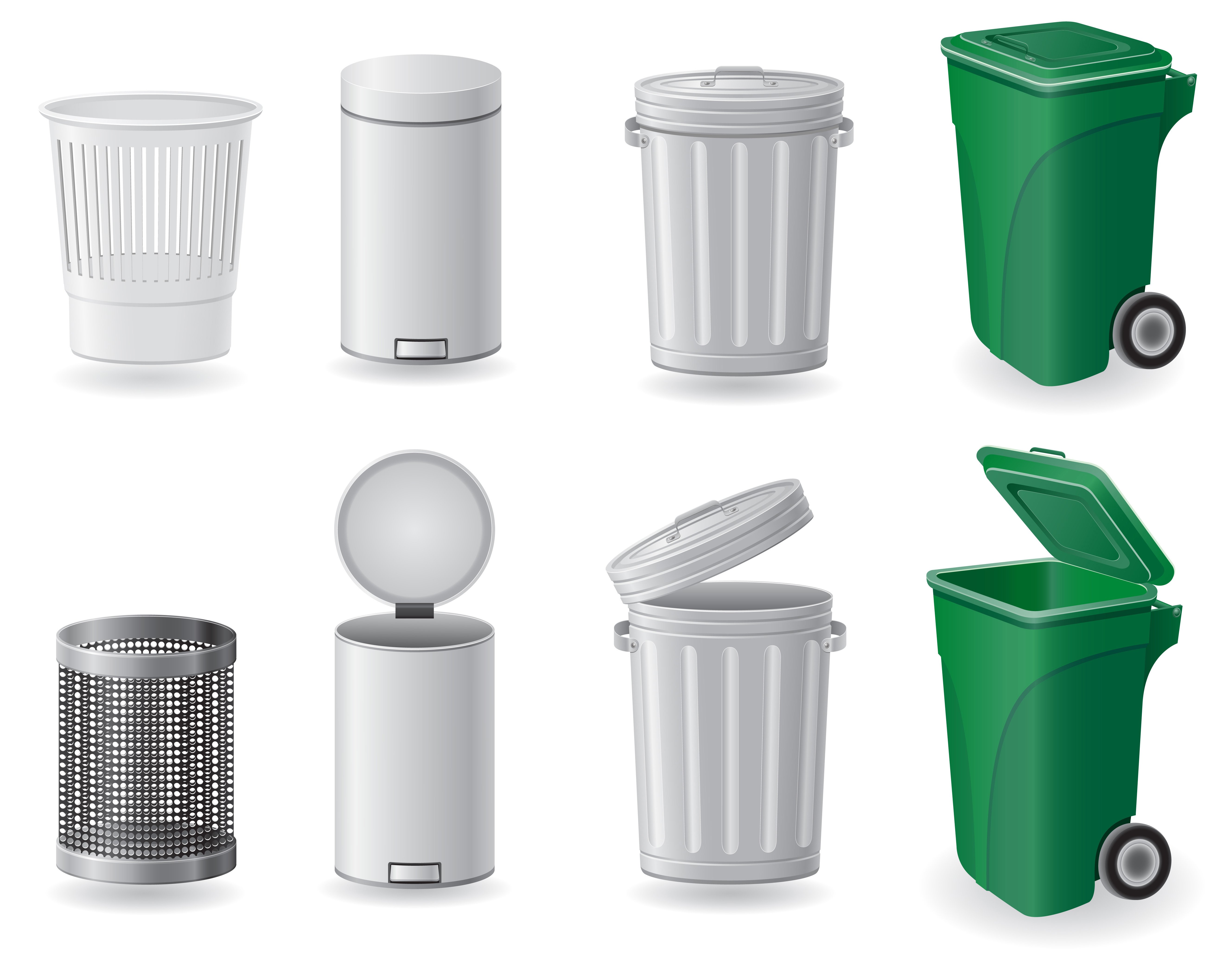 Фото: Мусорные баки на белом фоне