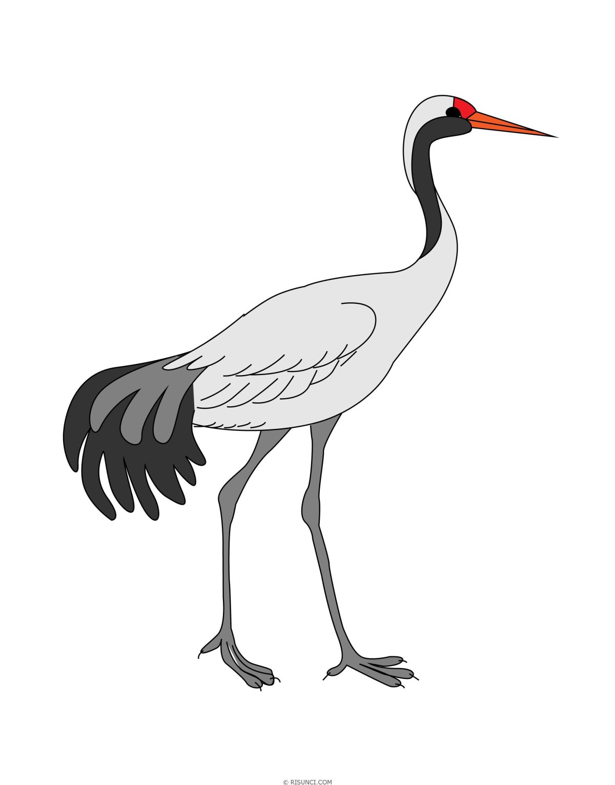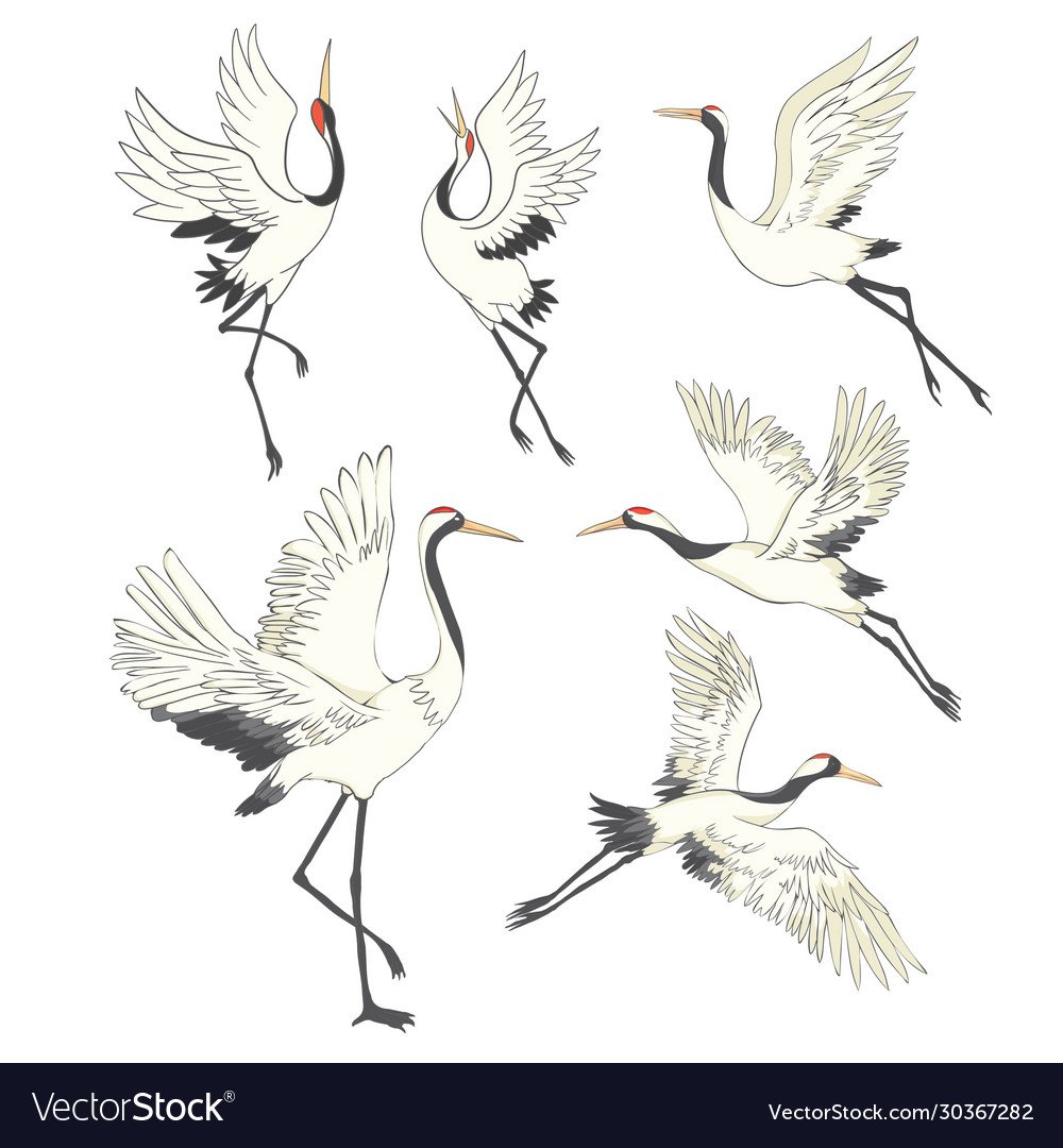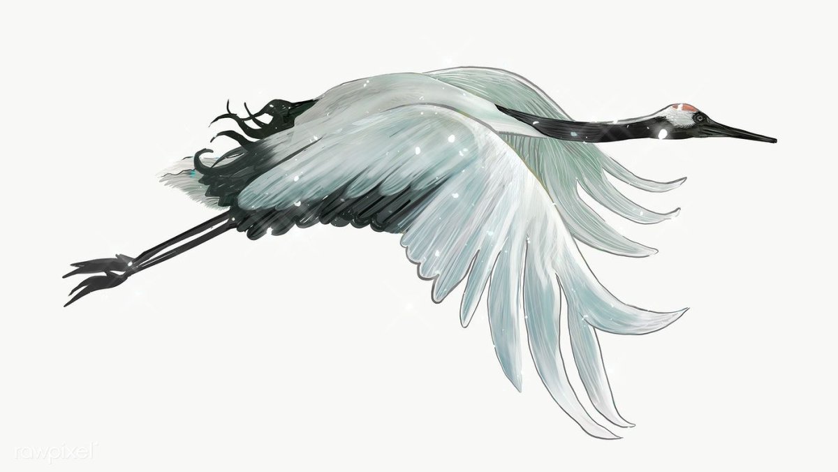 Летящий журавль с белым оперением нарисовать