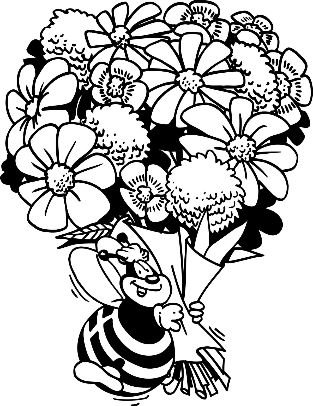 Букет цветов вектор черно белый
