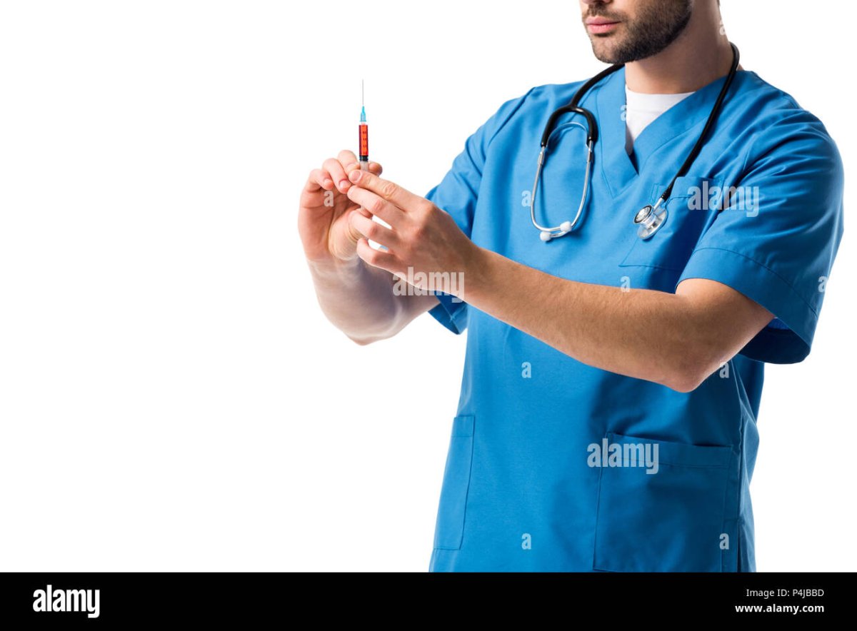Врач с большим шприцом