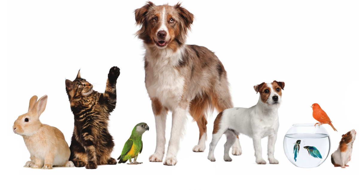 Домашние питомцы на белом фонеФото: Фон кошки собаки
