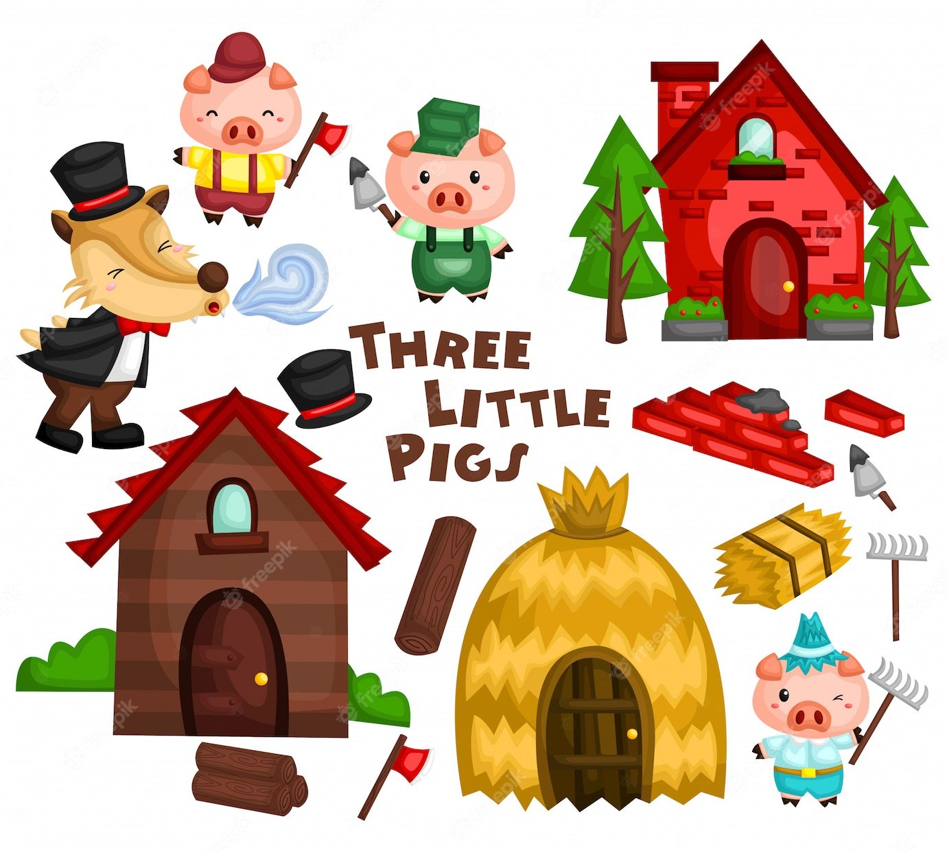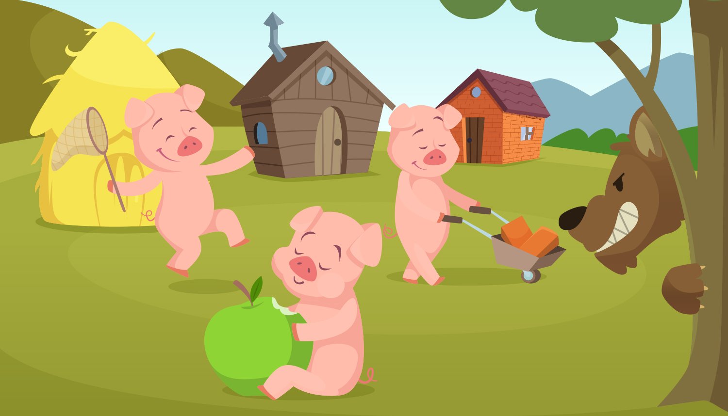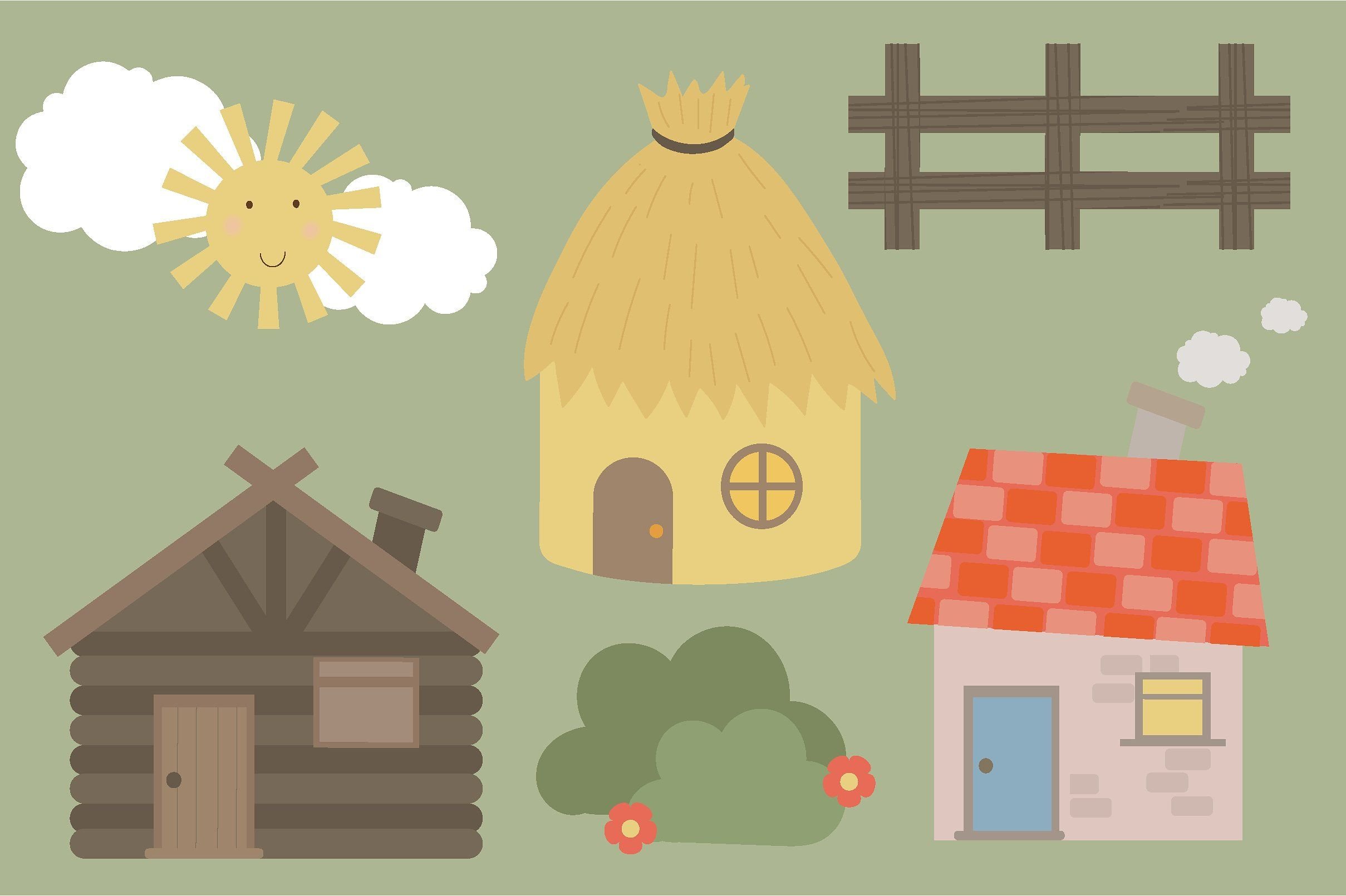 Домики из сказки три поросенка картинки