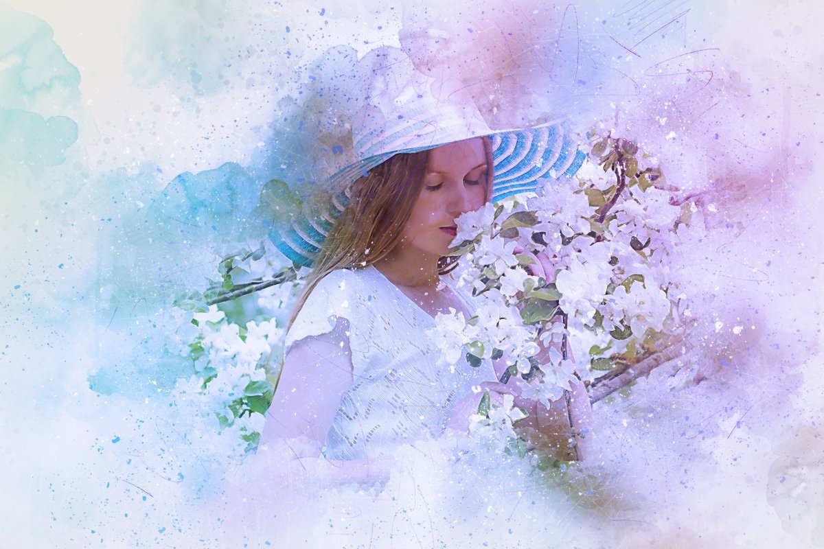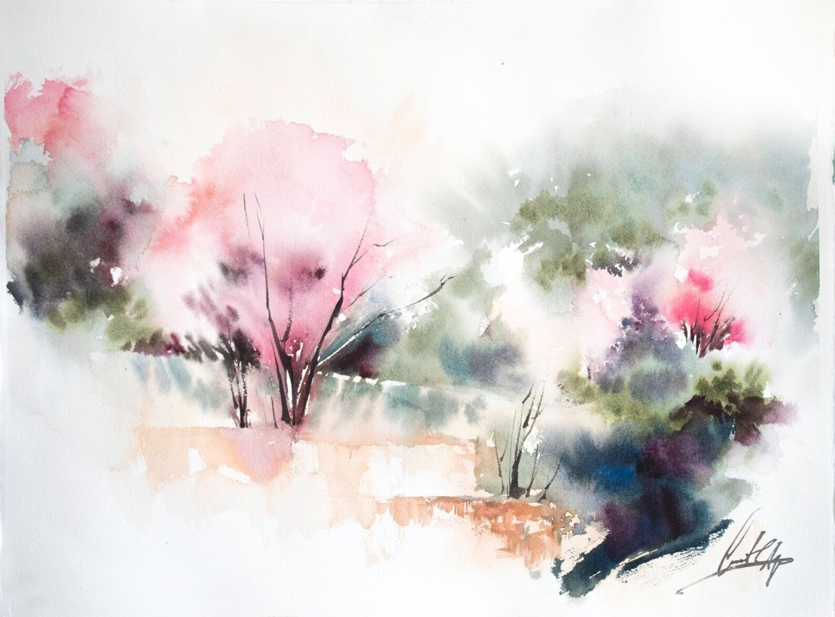 Фото: Весенний сад акварель