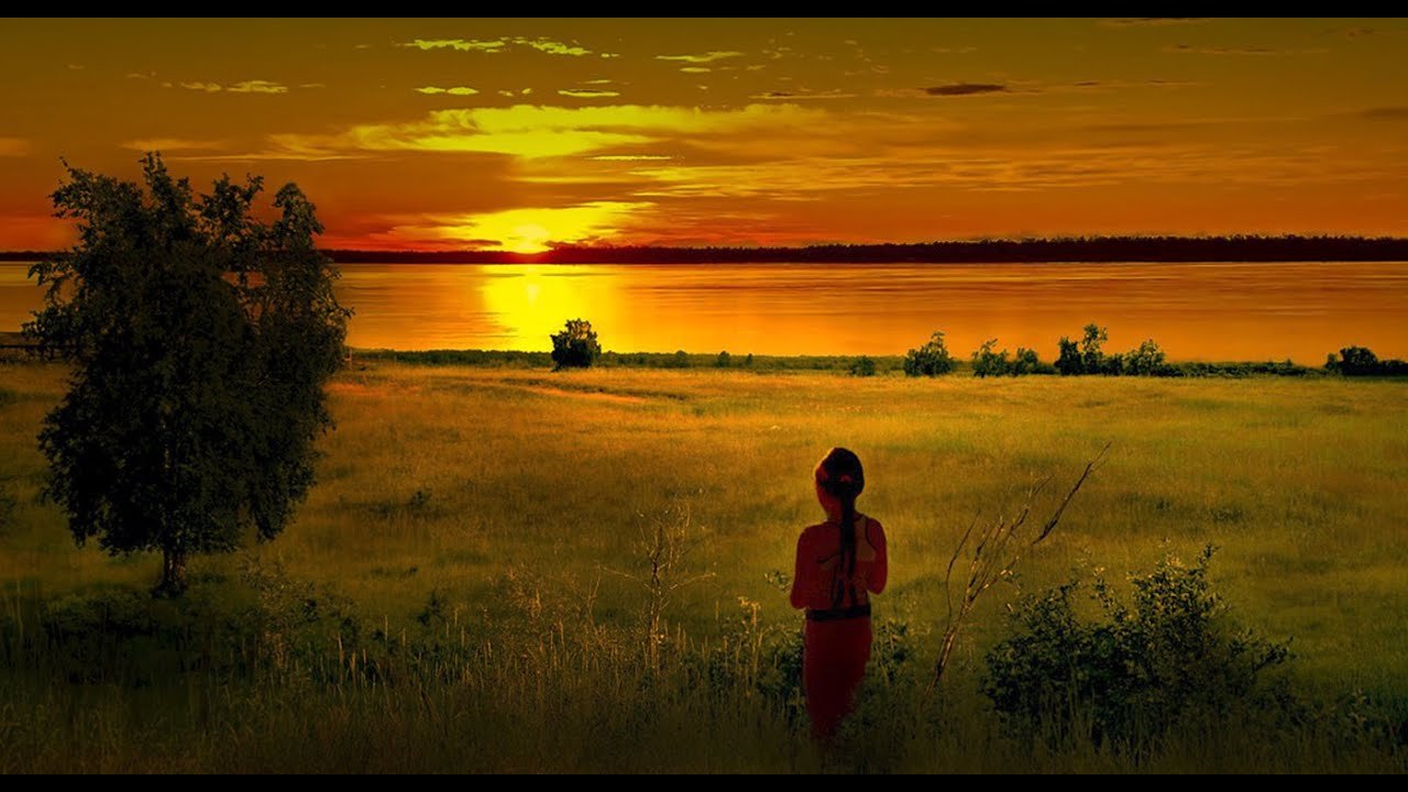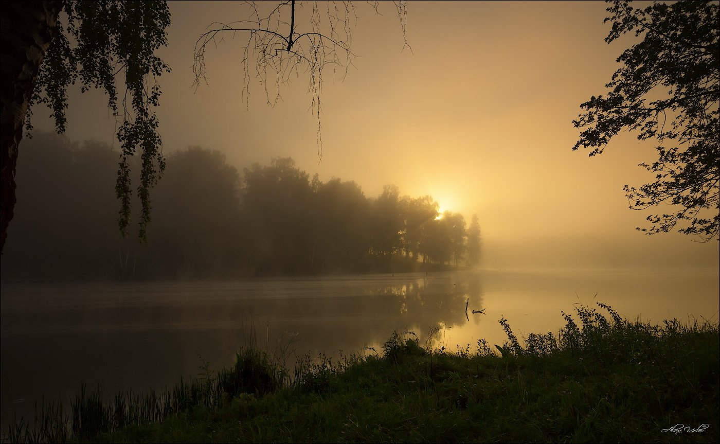 Закат солнца на озере