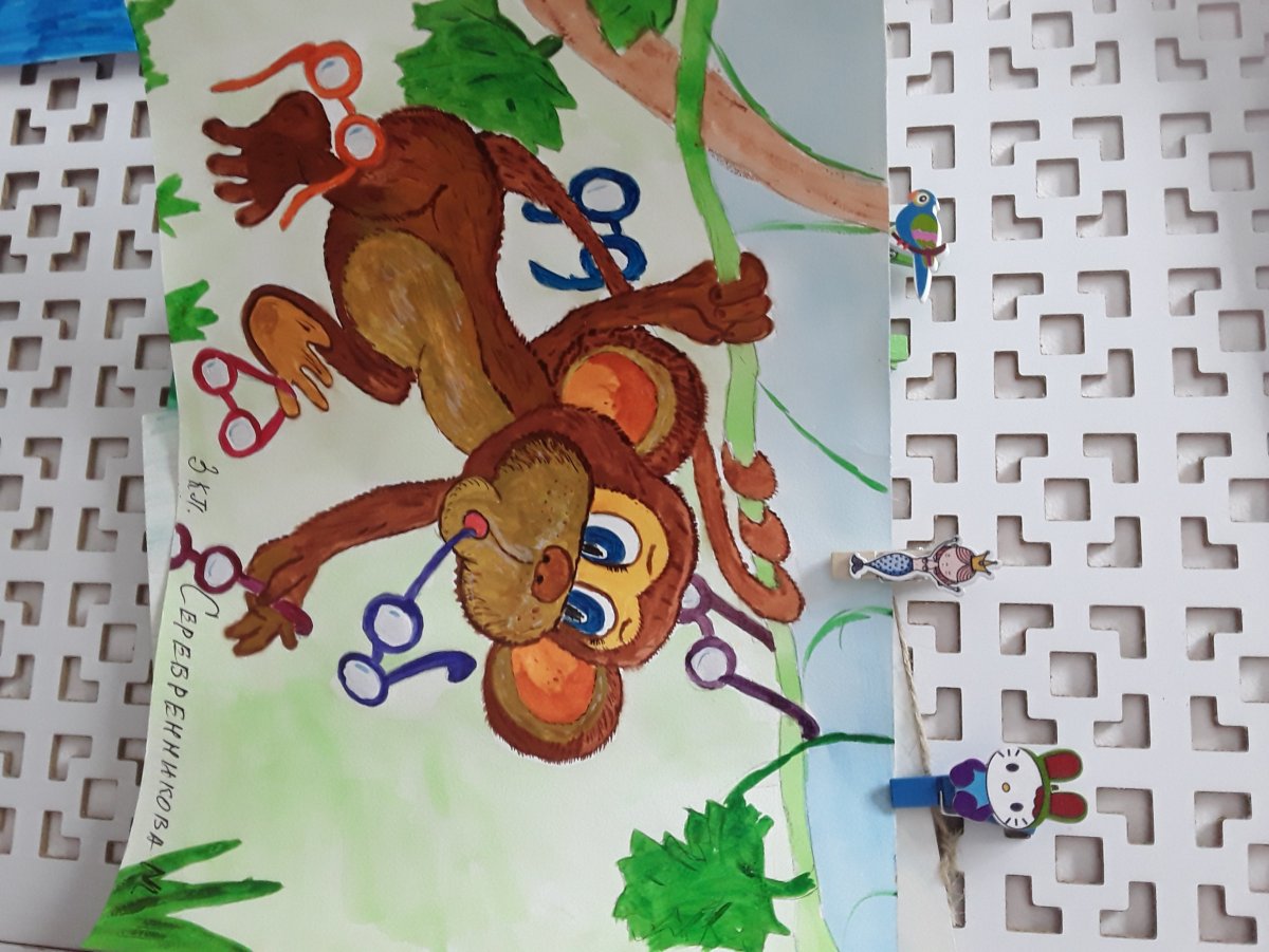 Обезьяна и очки рисунок