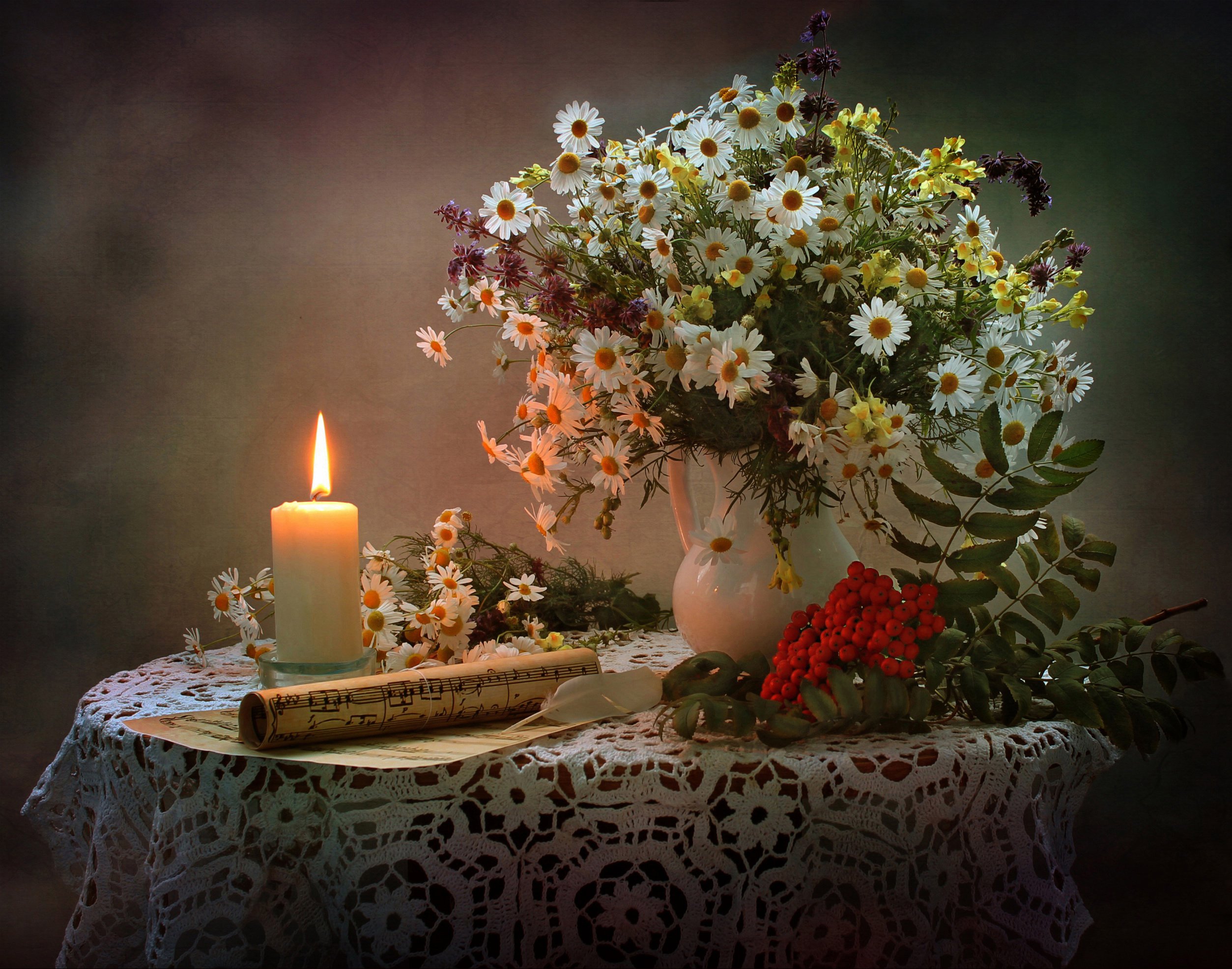 Прекрасного вечернего чаепития с пожеланиямиФото: Вечерний натюрморт с цветами