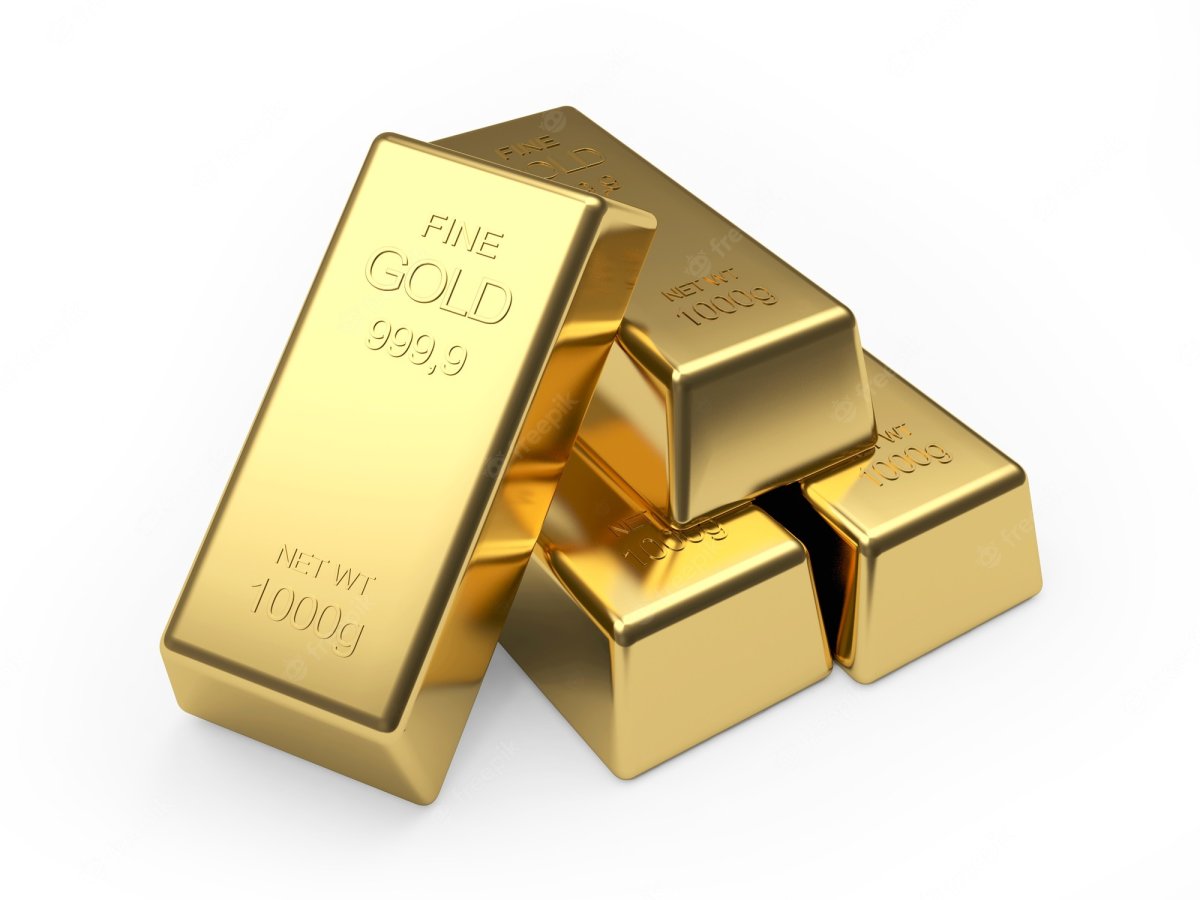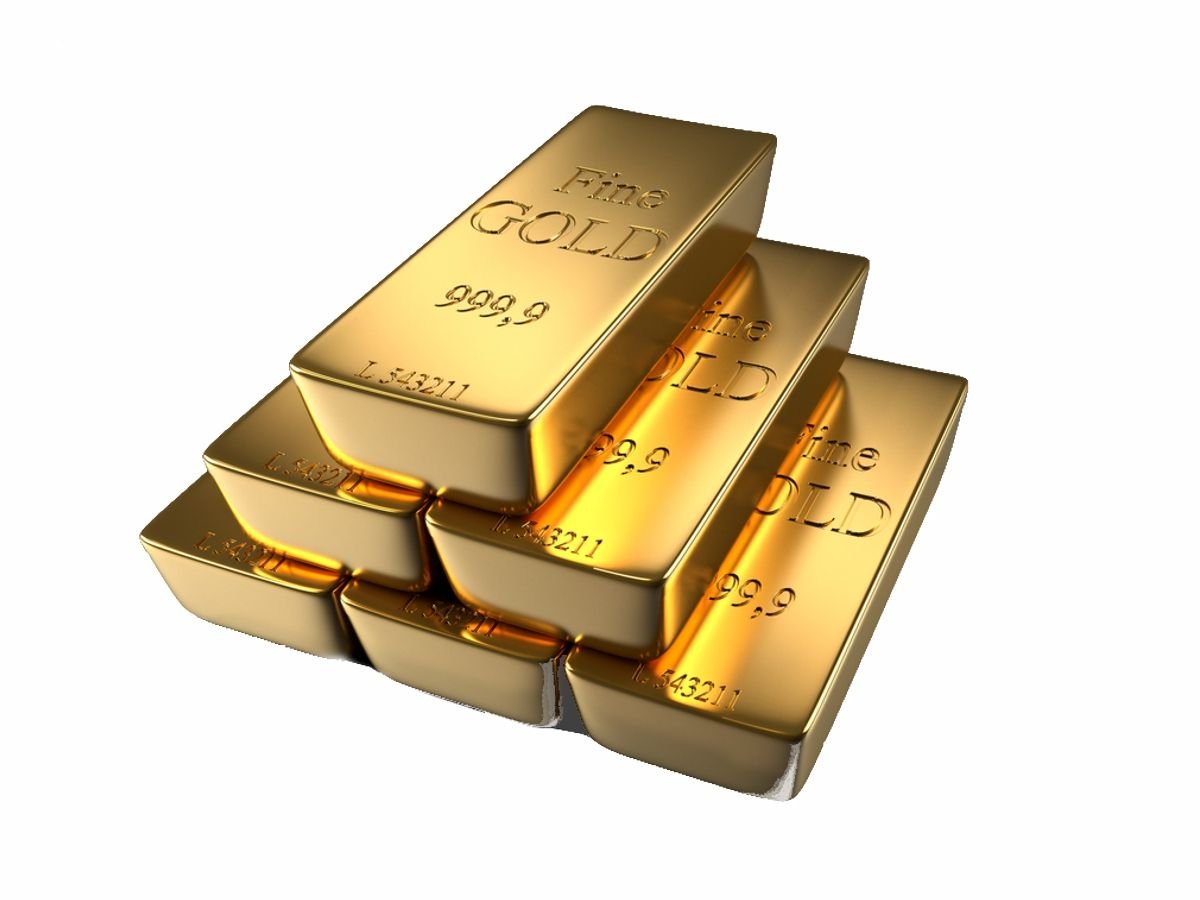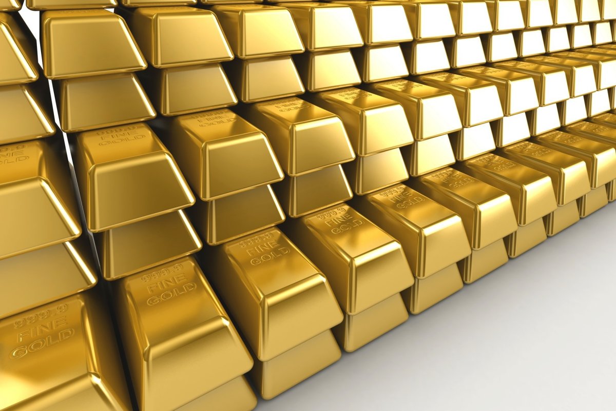 Фото: Слитки золота на белом фоне