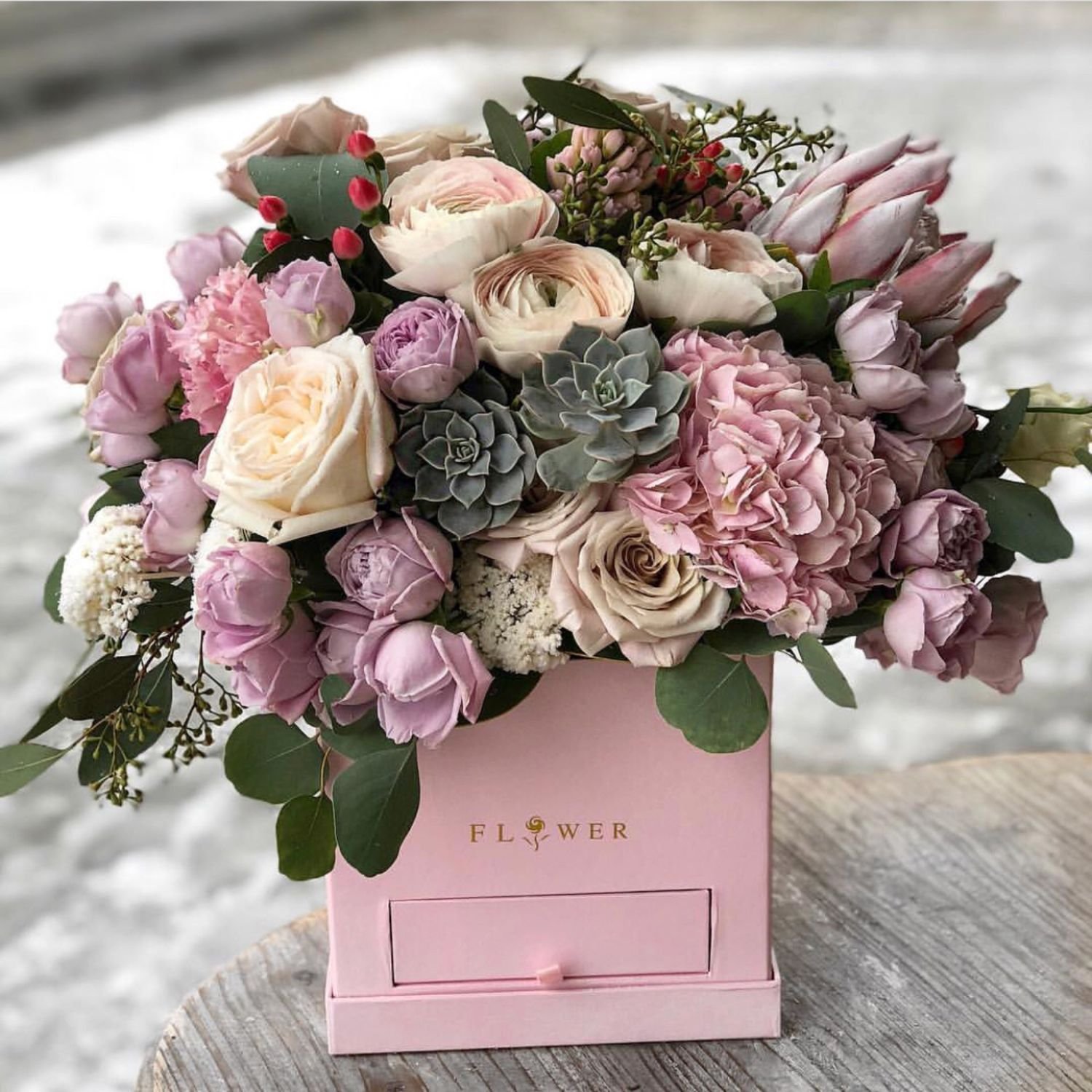 Кустовые розы в коробке