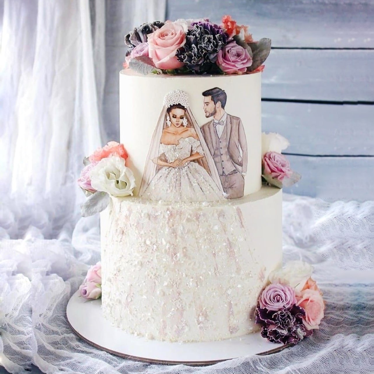 Свадебный торт с фотопечатью жениха и невесты