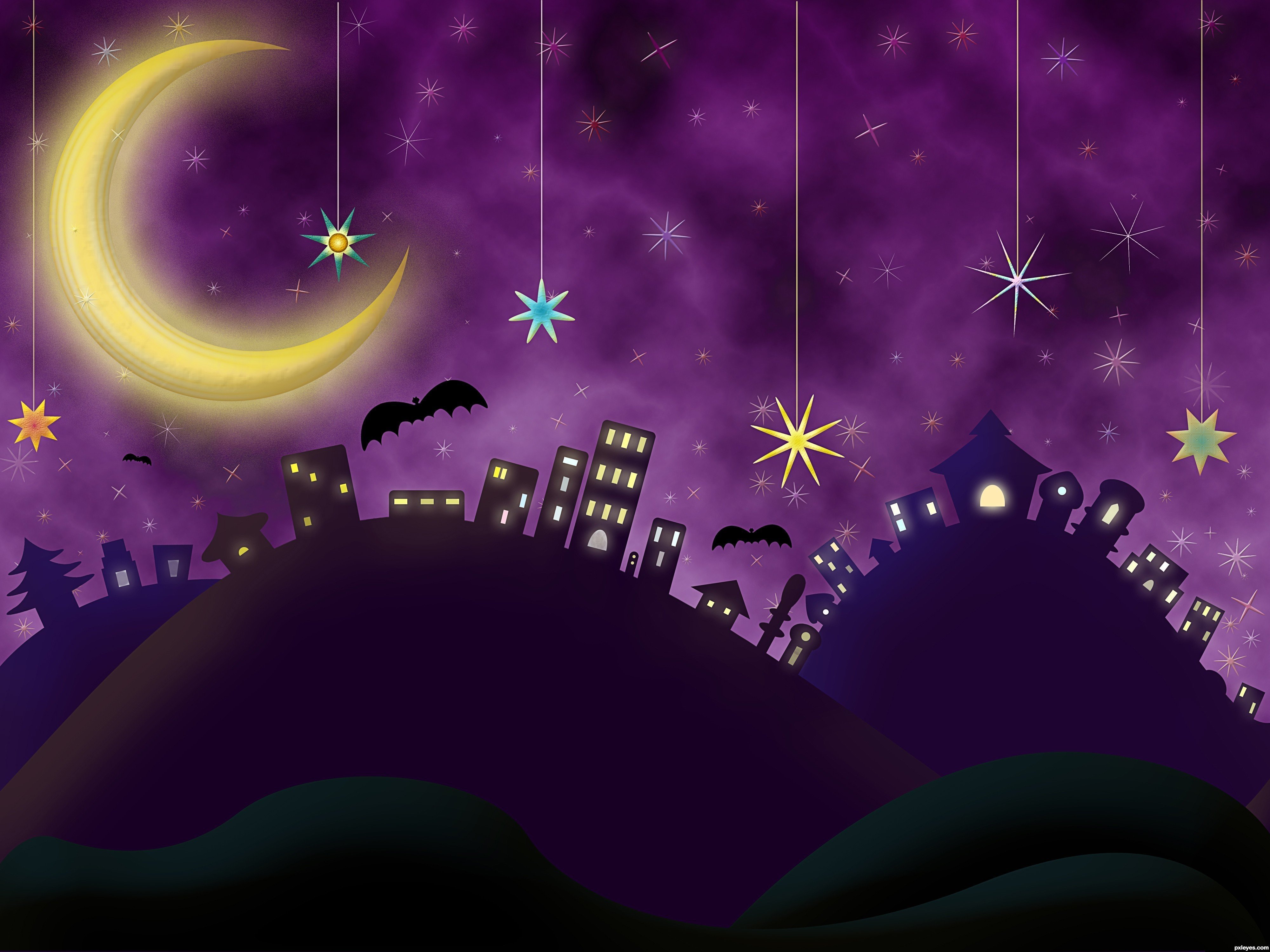 Сказочное звездное небоФото: Ночное небо мультяшное